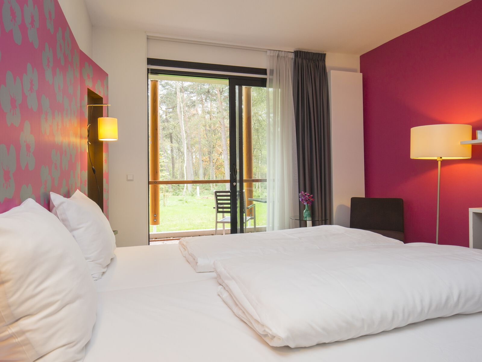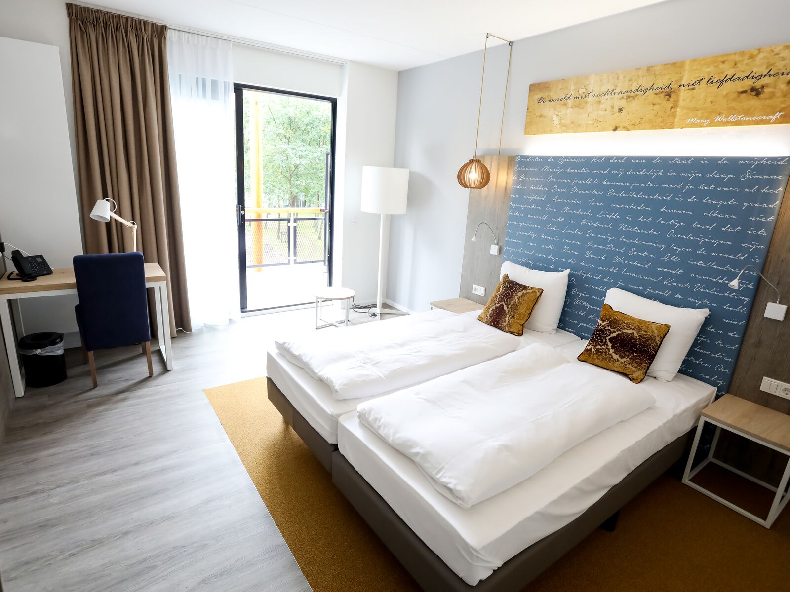 Er zijn 78 tweepersoons comfortkamers beschikbaar, verdeeld over 2 hotelvleugels. Alle comfortkamers hebben een terrasje of balkon op het zuiden met uitzicht op het bos. Iedere kamer beschikt over een badkamer met naar keuze een douche of bad, een separaat toilet, flatscreen televisie, gratis wifi en telefoon. Daarnaast beschikt iedere vleugel over een suite en een MIVA-kamer. De eerste hotelvleugel is in 2011 in gebruik genomen, de tweede hotelvleugel in 2017. Buiten de twee hotelvleugels zijn er nog 19 eenpersoons pluskamers, die in 2017 geheel zijn gerenoveerd en beschikken over een eigen badkamer met douche en toilet, een flatscreen televisie en telefoon. Op de hotelvleugels liggen ongeveer 180 zonnepanelen voor de warmwatervoorziening en het opwekken van elektriciteit voor eigen gebruik.