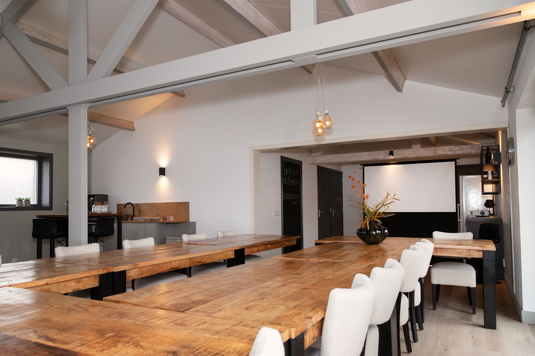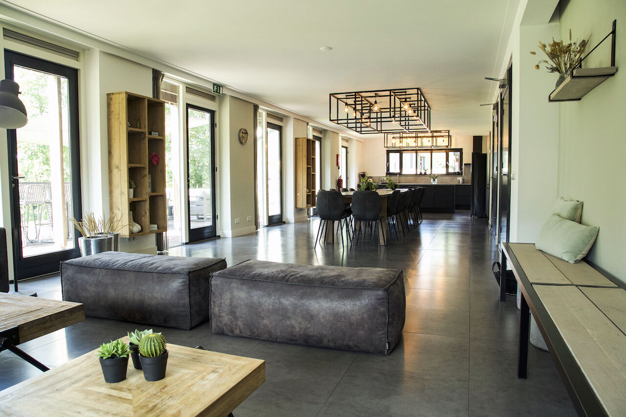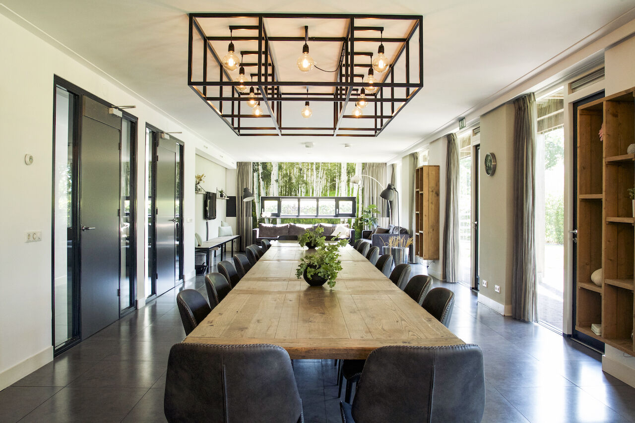 De Larik's Hoeve biedt een landelijke en rustige omgeving die uitnodigt tot ontspanning en inspiratie. De lichte, moderne ruimtes stralen warmte en gezelligheid uit, met een inrichting die perfect in balans is tussen stijl en comfort. Kies voor een comfortabele stoel aan tafel tijdens vergaderingen of geniet van de informele setting op de knusse banken. Buiten wacht een prachtige tuin die rust en ruimte biedt, ideaal voor een korte pauze of creatieve brainstormsessie in de natuur. Dankzij het prachtige uitzicht en de zorgvuldig ingerichte ruimtes voelt iedereen zich hier meteen thuis. Hier wordt een productieve dag gecombineerd met een ontspannen, aangename omgeving.