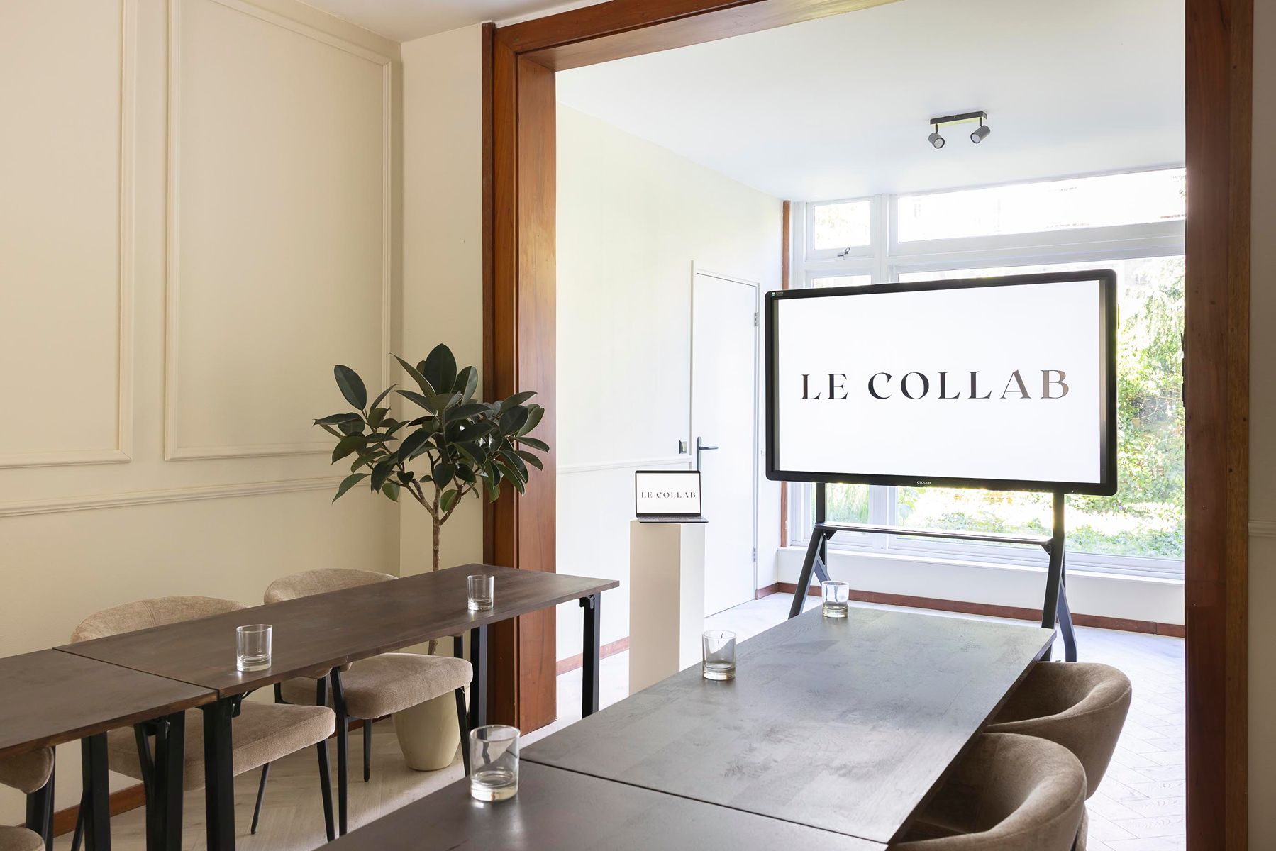 Le Collab is een bijzondere vergader- en evenementenlocatie in Amsterdam-Oost, gevestigd in een karakteristiek pand uit 1905, tegenover de ingang van het Frankendaelpark. Het is een fijne plek waar je je, midden in de stad, gemakkelijk kunt terugtrekken. De locatie is goed bereikbaar met zowel het openbaar vervoer, de fiets als de auto, en er bevinden zich meerdere parkeergarages op loopafstand. Binnen ervaar je een elegante en intieme boutique-sfeer: licht en ruim door de grote ramen, met wisselende kunst aan de muur en veel groen. Alles is aanpasbaar; de opstellingen en de opzet worden altijd in overleg afgestemd. Bij Le Collab geloven we in persoonlijke service. Vanaf het eerste contact tot en met de dag zelf heb je één vast aanspreekpunt. We denken graag met je mee en zijn aanwezig op locatie om ondersteuning te bieden, bijvoorbeeld bij techniek of ontvangst. Duurzaamheid is een van de kernwaarden van Le Collab en dit zie je terug in al onze processen. Zo is onze catering bijvoorbeeld grotendeels seizoensgebonden.