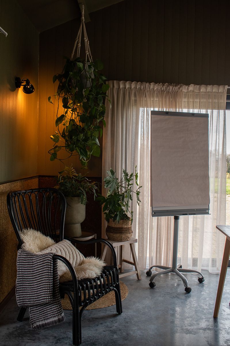 Lodge Windraak is een voormalige ijssalon, gelegen op het terrein van een grote woonboerderij, en omgetoverd tot een veelzijdige vergaderlocatie. De ruimte is stijlvol en prettig ingericht, met aandacht voor comfort en inspiratie. Elk hoekje nodigt uit tot creativiteit, van gezellige zitplekken tot de sfeervolle vuurplaats, die gebruikt kan worden voor verbindende sessies en cirkels. De lodge ademt een warme, landelijke sfeer en biedt een rustige omgeving om geconcentreerd en ontspannen te werken.