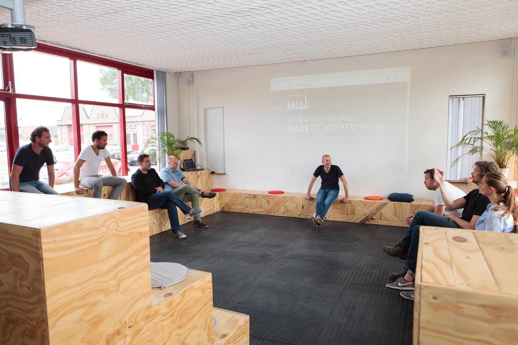 Gelegen in de Waarderpolder in Haarlem vind je MAAK Haarlem. Bij MAAK Haarlem zijn de meest innovatieve en circulaire ondernemers van Haarlem gevestigd. Temidden van deze bedrijvigheid kun je de MAAK Arena huren, ook in de avond. Vergaderen, debatteren, brainstormen, trainingen, workshops houden of presentaties geven op een inspirerende locatie? Dan ben je bij de MAAK Arena aan het juiste adres. Er is voldoende parkeergelegenheid op het terrein, met ingang via de Ingenieur Lelyweg.