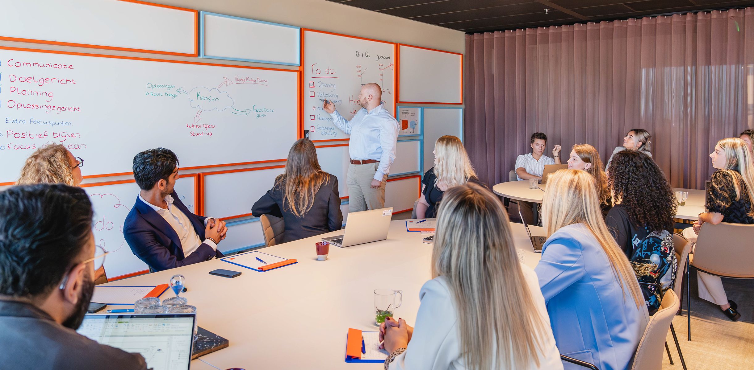 Om het ijs te breken of de onderlinge banden te versterken, hebben de ruimtes leuke energizerkaartjes. Deze bevatten spelletjes en vragen om elkaar op een andere manier te leren kennen. Of wat dacht je van een cocktailworkshop? Wij helpen graag met het organiseren van teambuildingactiviteiten.