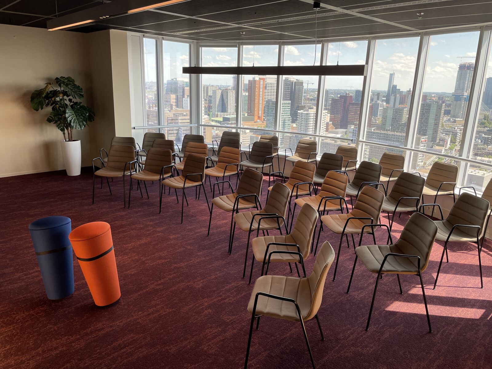 Op de 23e etage met uitzicht over de skyline van Rotterdam vind je een inspirerende locatie voor zakelijke en feestelijke bijeenkomsten. Direct tegenover Rotterdam Centraal en ideaal voor meetings, trainingen en bedrijfsevents.