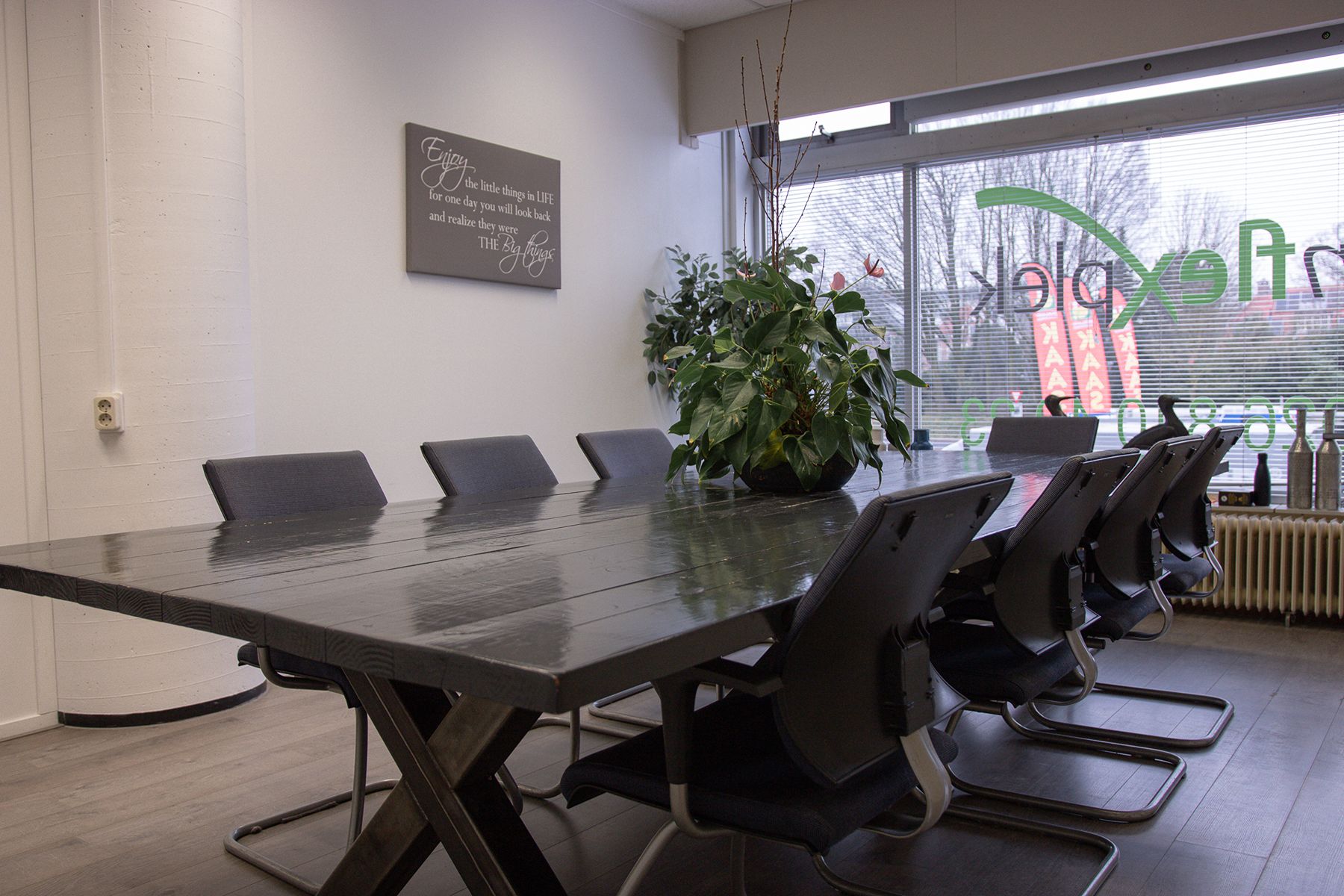De inrichting van alle ruimtes bij Mijn Flexplek is gezellig maar zakelijk. De vergaderruimtes zijn flexibel ontworpen, zodat ze geschikt zijn voor zowel kleine als grote gezelschappen. In een aantal ruimtes is het bovendien mogelijk om de opstelling aan te passen, bijvoorbeeld van een grote vergadertafel naar een U-vorm of een leer-/schoolopstelling.