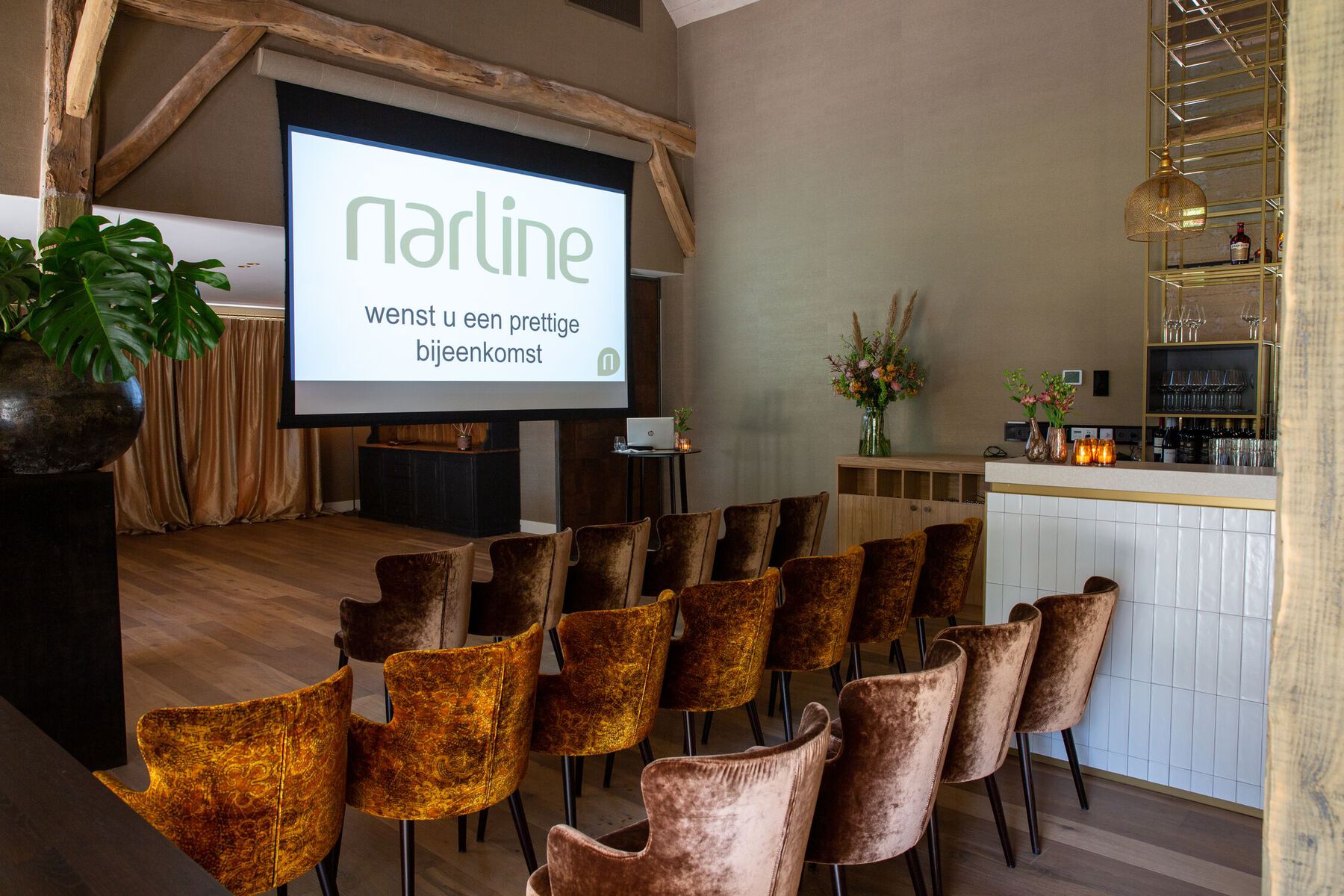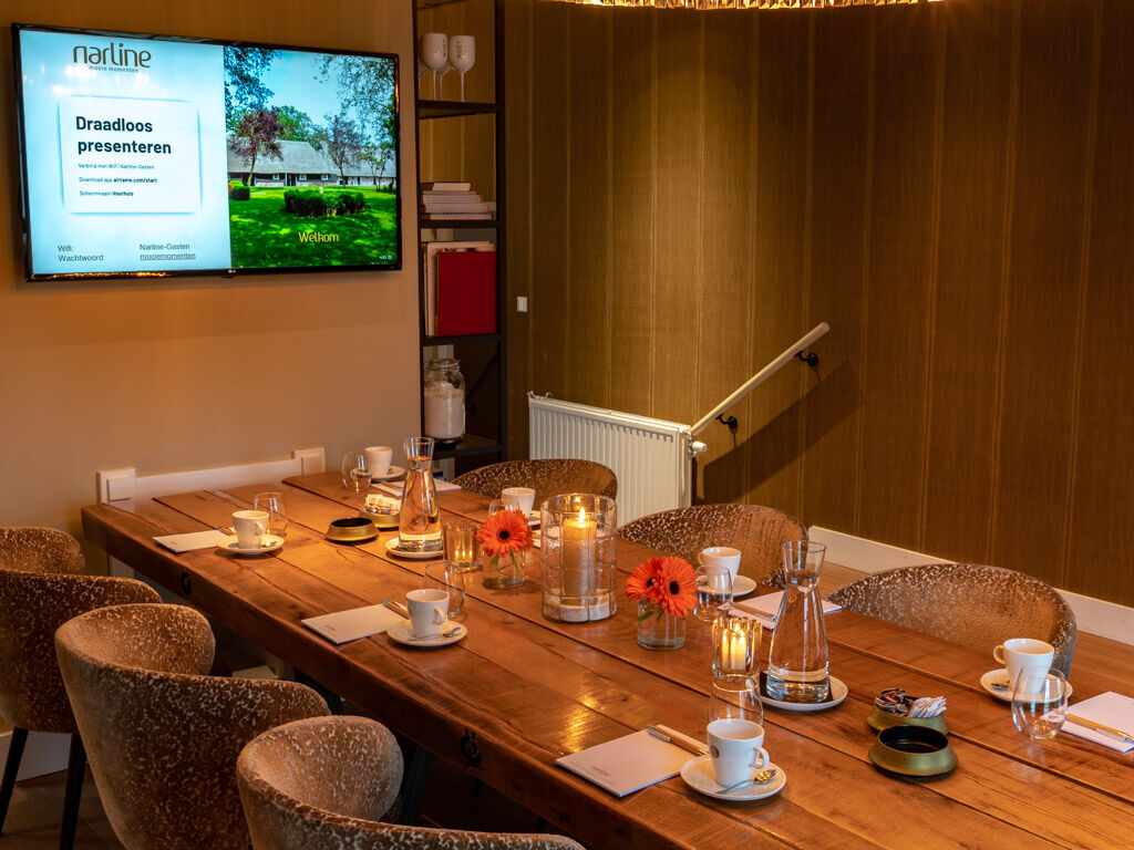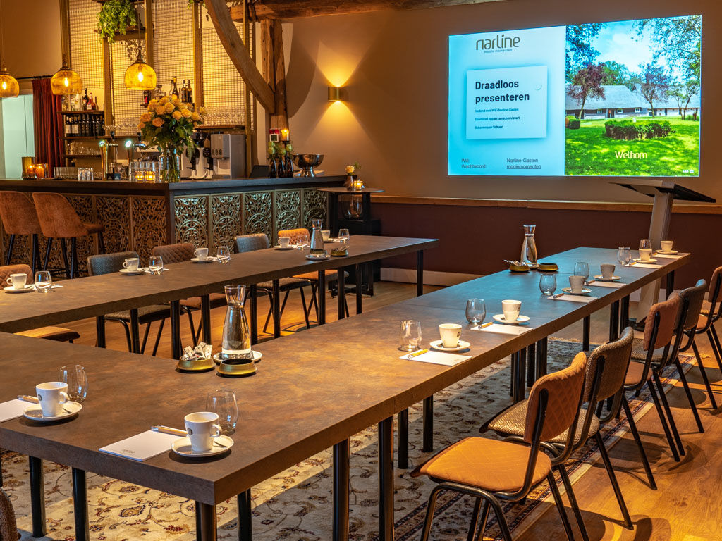 Bent u op zoek naar een inspirerende, rustige vergaderlocatie in het groen, centraal gelegen nabij de A28 in Zuidwolde, Drenthe? Narline biedt een unieke combinatie van historie, comfort en gastvrijheid. Gevestigd in een prachtig gerestaureerde Saksische boerderij uit 1768, een rijksmonument met karakter, is Narline de ideale setting voor zakelijke bijeenkomsten, presentaties, heisessies, congressen of bedrijfsfeesten. De vier stijlvolle ruimtes, de linker Deel, de rechter Deel, het Voorhuis en de monumentale Bijschuur, zijn flexibel in te richten en geschikt voor gezelschappen van 2 tot 250 personen. Alle zalen zijn voorzien van moderne faciliteiten die bijdragen aan een vlekkeloos verloop van de bijeenkomst. Naast de binnenruimtes beschikt Narline over een sfeervolle tuin met royaal terras, een moestuin en een eigen wijngaard, perfect voor een ontspannen pauze of afsluitende borrel in de buitenlucht.