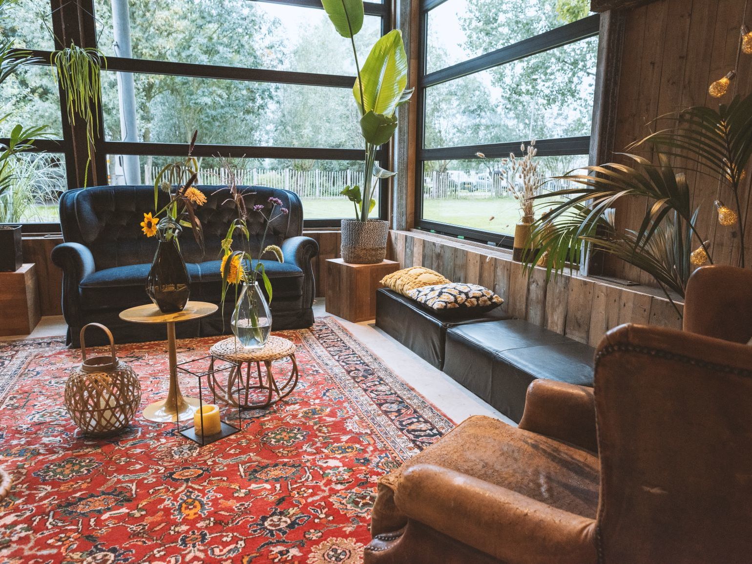 De Schuur van Oker is aan de buitenzijde volledig bekleed met duurzaam bamboe. Dit geeft een luxe uitstraling. Wanneer je de Schuur binnentreedt, zie je echter nog de authentieke bouw van de schuur. Door de buitenzijde te isoleren kon de binnenzijde van de authentieke schuur behouden blijven. Door een grote raampartij in de hoek van het pand te plaatsen, wordt authenticiteit gecombineerd met een hippe en hedendaagse stijl. De raampartij biedt uitzicht op de prachtige, inspirerende polder van Midden-Delfland. De inrichting is geheel verzorgd door eigenaresse Evita Post. Het is een combinatie van persoonlijke verzamelingen, gerecyclede materialen, kunst, veel planten, hout, vintage bankstellen, teakhouten barkrukken, een bar van staal en gerecyclede houten delen, schuifdeuren uit een oude autogarage, een antiek Perzisch tapijt en veel kaarsen. Kortom, eigentijds, sfeervol, huiselijk en helemaal van nu.