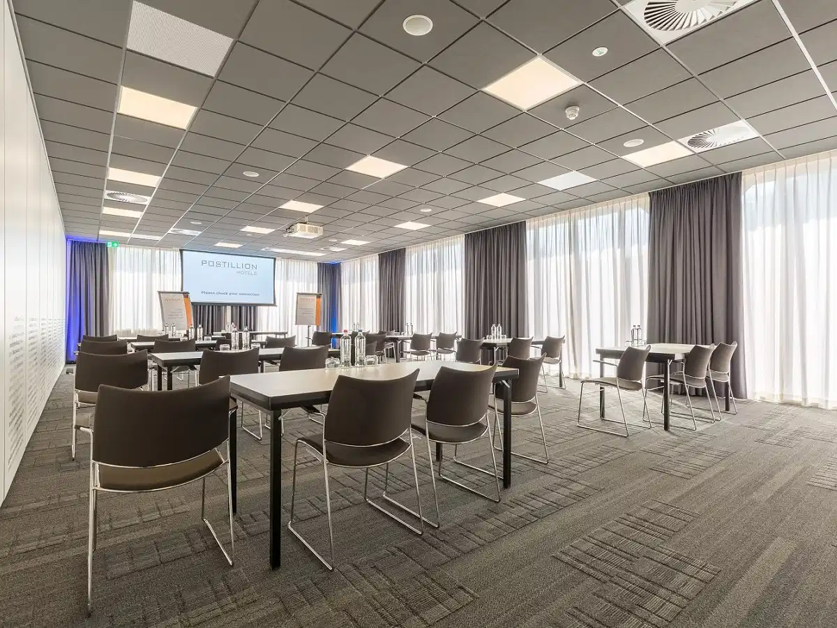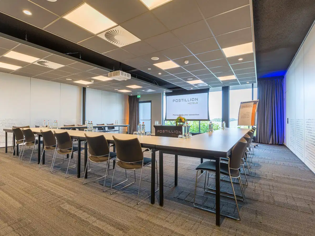 Postillion Hotel Amersfoort Veluwemeer beschikt, met een ligging aan de A28 en uitzicht over het prachtige Veluwemeer, over alle ingrediënten voor een succesvolle meeting. Met negen multifunctionele ruimtes, capaciteit tot 410 deelnemers en een eigen parkeerplaats is het hotel de ideale congres- en evenementenlocatie. Postillion Hotel Amersfoort Veluwemeer heeft de Green Key Gold classificatie.