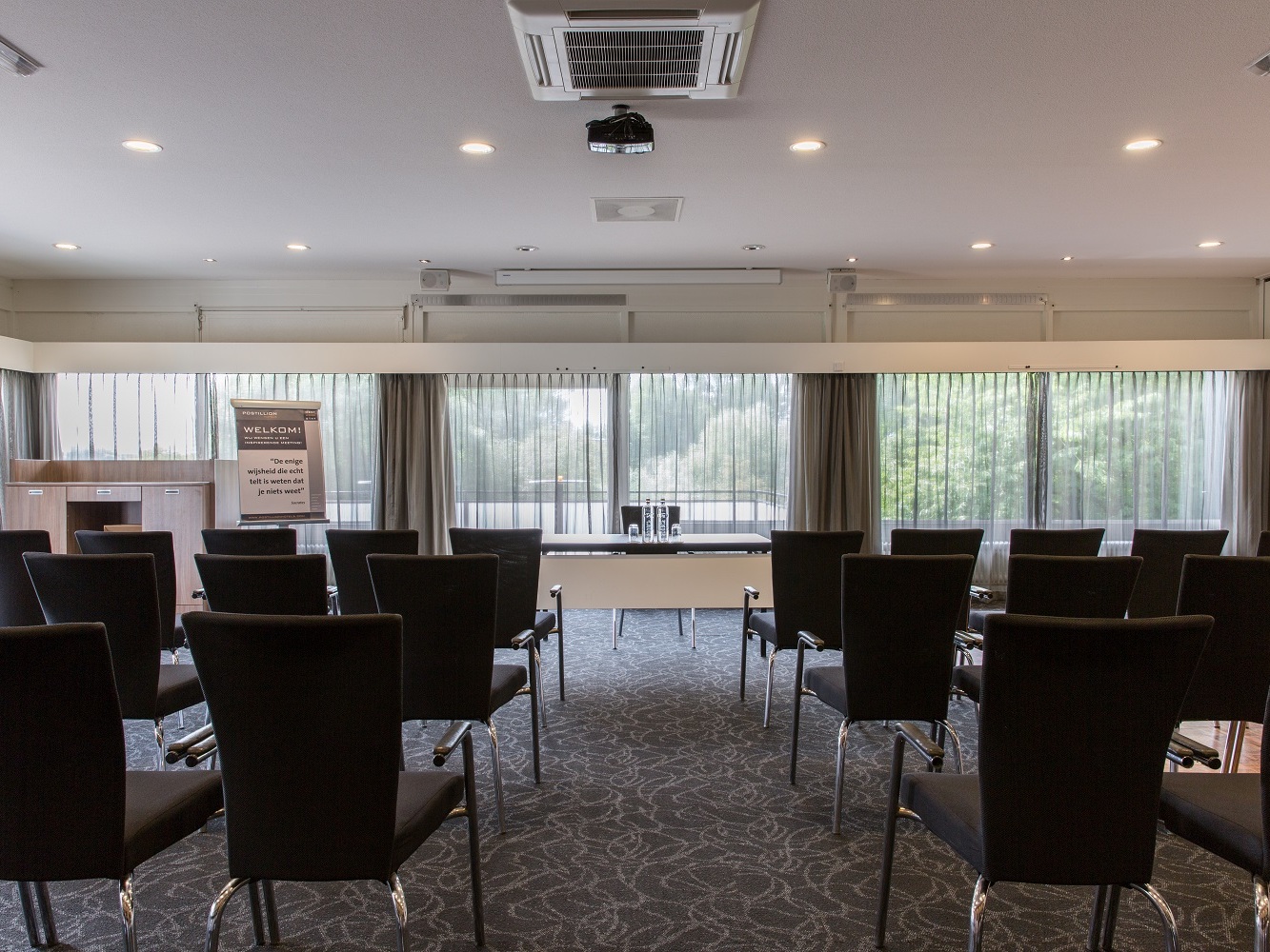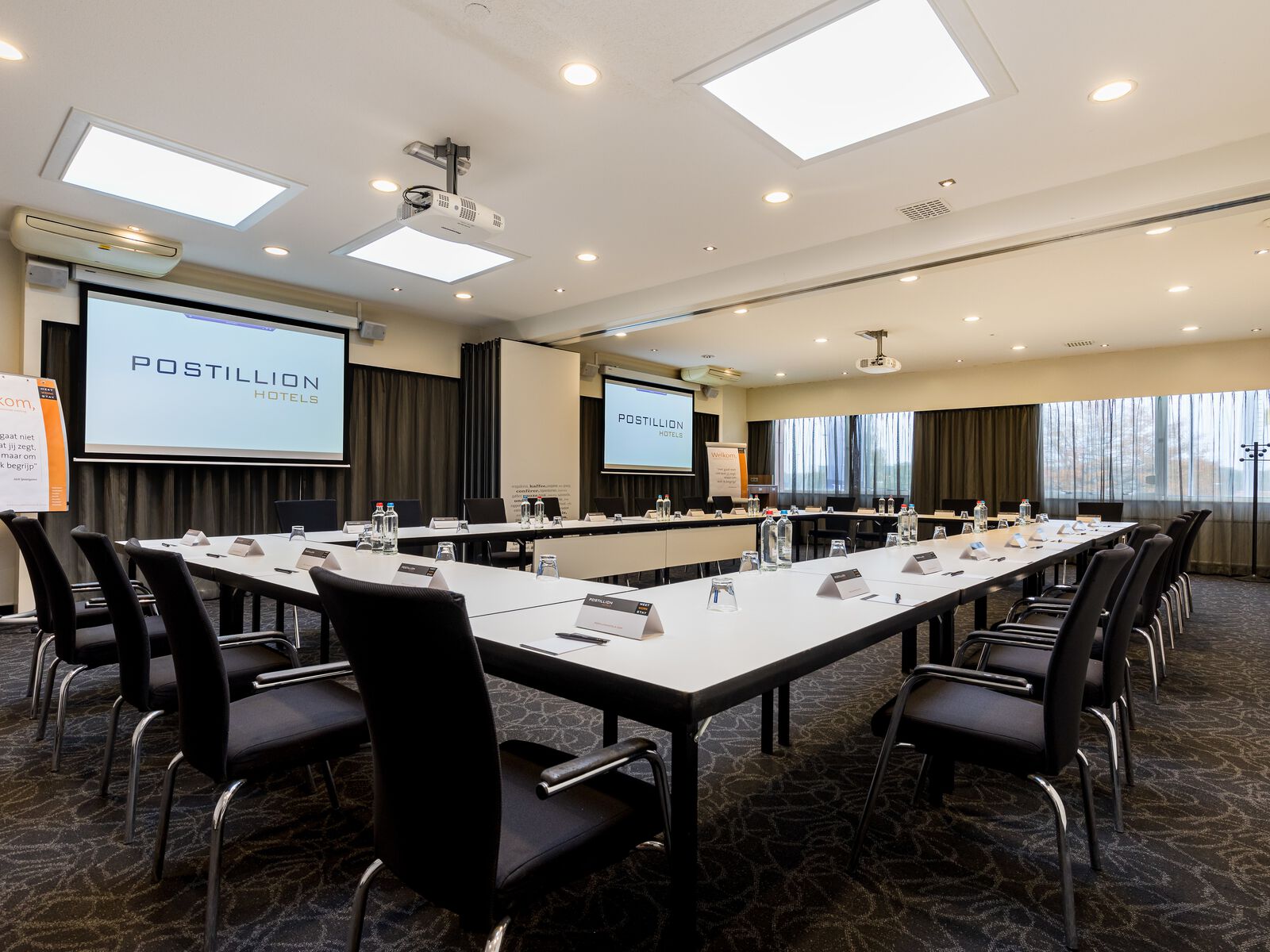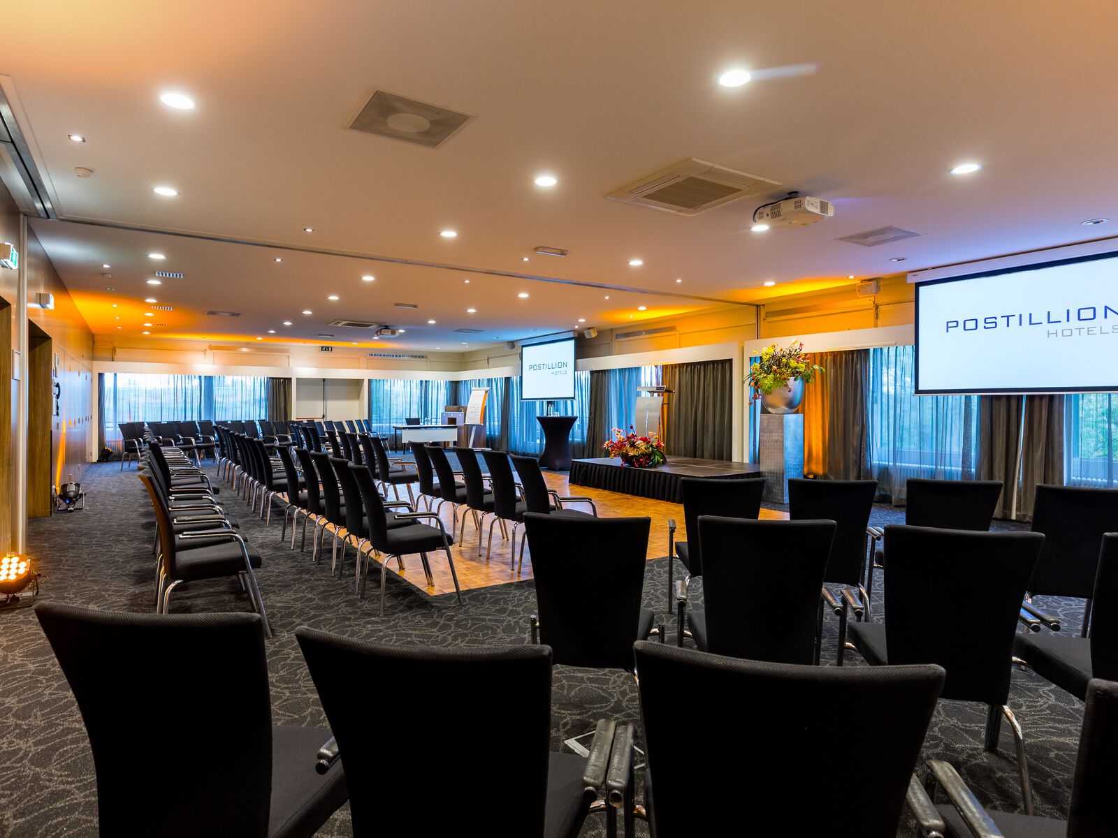 De viersterrenlocatie, gelegen tussen de snelweg A1 en de IJssel, beschikt over 15 multifunctionele vergaderruimten met een maximale capaciteit van 300 personen. Zo is de locatie geschikt voor diverse doeleinden. De luxe boardrooms, geschikt voor meetings tot 12 personen, bieden alle faciliteiten om uw vergadering perfect te laten verlopen en ook voor grotere congressen en beurzen bent u hier aan het juiste adres. Voor alle bijeenkomsten staat de meeting host van Postillion Hotel Deventer klaar om alle gasten te ontvangen en gedurende de dag te begeleiden. Het eigen parkeerterrein biedt plaats voor alle gasten en overnachten is ook mogelijk in een van de 96 moderne hotelkamers. Niet voor niets beschikt deze Postillionlocatie over vijf vergaderhamers, toegekend door de Nationale Congres- en Vergaderclassificatie en heeft het niveau Goud behaald van het duurzaamheidskeurmerk The Green Key.