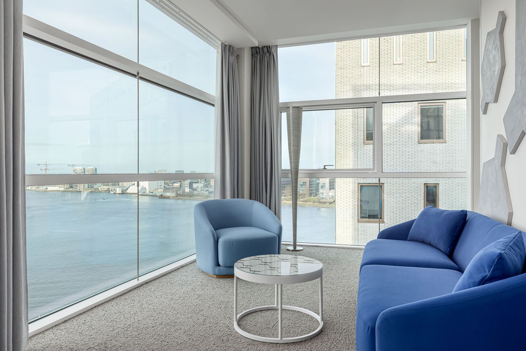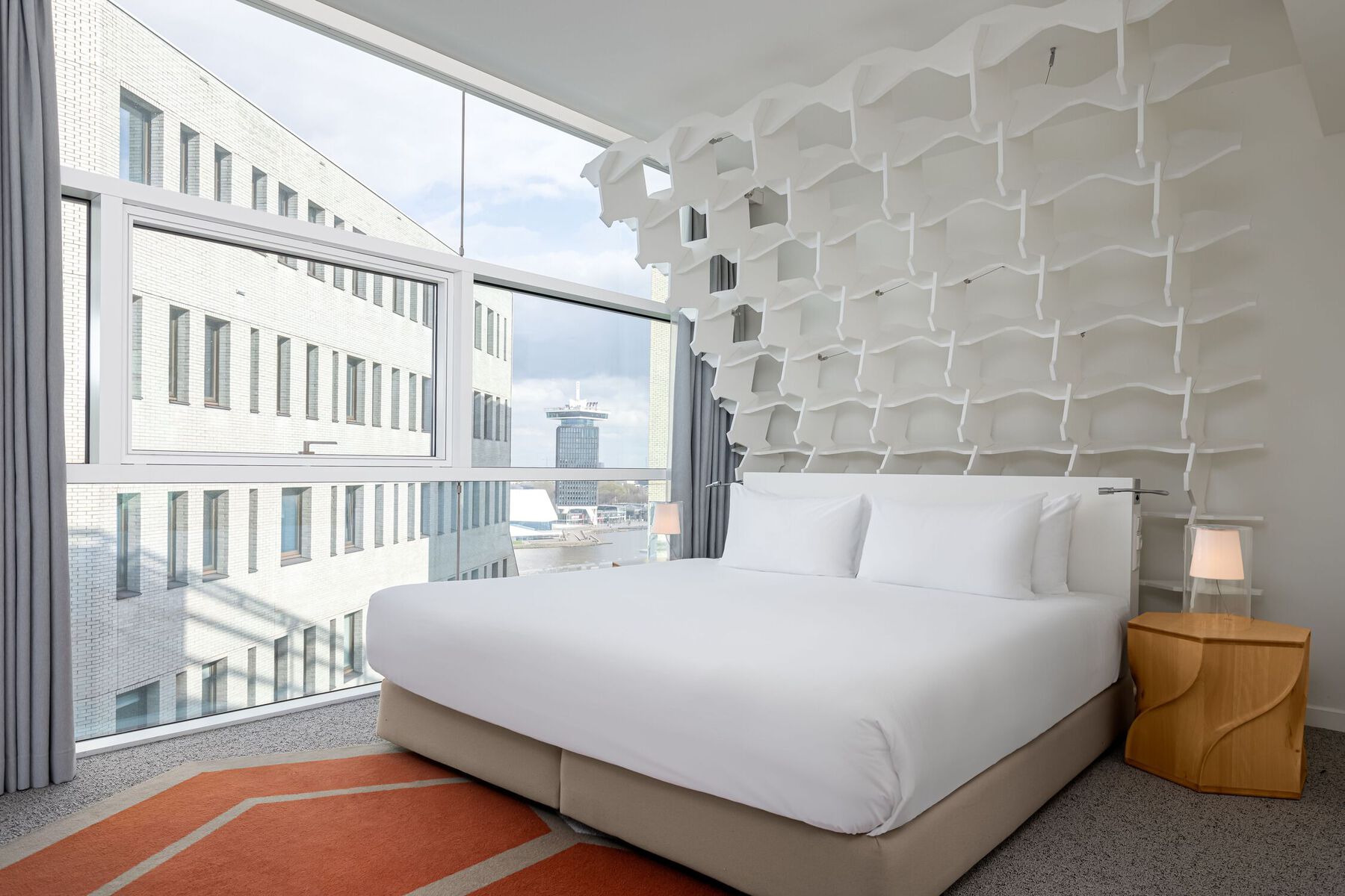 De kamers zijn gemiddeld 30 m2 en hebben een schitterend uitzicht op de jachthaven, Amsterdam of het IJ. Ze zijn voorzien van alle gemakken en services, zoals airconditioning, een kluis, minibar, een bureau, föhn, strijkijzer, een tv-scherm en een ruim bed om in weg te dromen. De luxe kamers worden gekenmerkt door hun unieke designs, die per kamer en kamersoort kunnen verschillen. Bij een overnachting is er de mogelijkheid om te genieten van het uitgebreide internationale ontbijt in restaurant I-Dock.