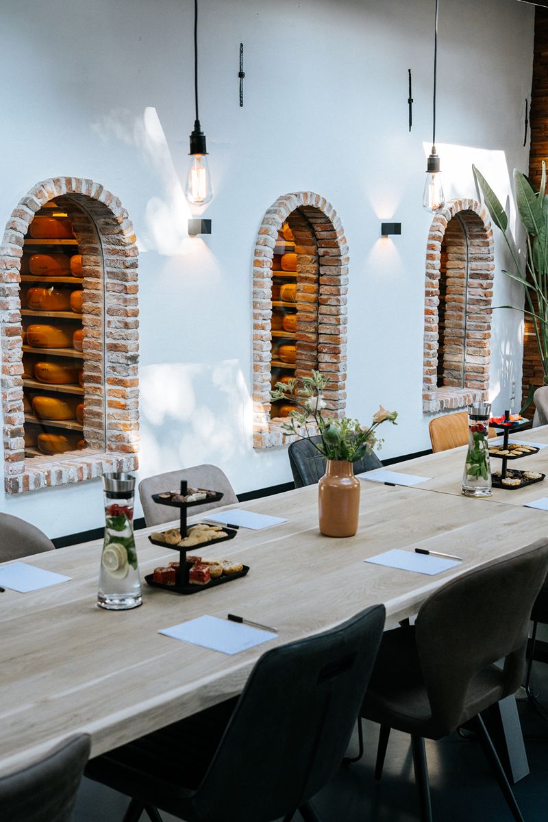 Altijd al willen vergaderen op een unieke locatie in Nederland waar al je gasten over na zullen praten? Als je op de biologische kaasboerderij komt vergaderen, ga je met mooie herinneringen naar huis. Een excellente service, inspirerende vergaderomgeving, optimale gastvrijheid en totale ontzorging. Dat ontvang je bij Ruyge Weyde Vergaderen. Kaasboerderij de Ruyge Weyde is een 5e generatie familiebedrijf in Oudewater, waar sinds 1847 echte Goudse Boerenkaas wordt bereid. Het is de enige biologische kaasboerderij in Nederland waar rauwmelkse Boerenkaas wordt gecombineerd met een melkrobot en weidegang voor de koeien. De sfeer van de moderne en authentieke kaasboerderij proef je terug in de vergaderruimte, door het uitzicht op de kaasrijping en de weide. De vergaderlocatie is high end ingericht, voorzien van alle denkbare luxe en voldoende parkeergelegenheid voor de deur.