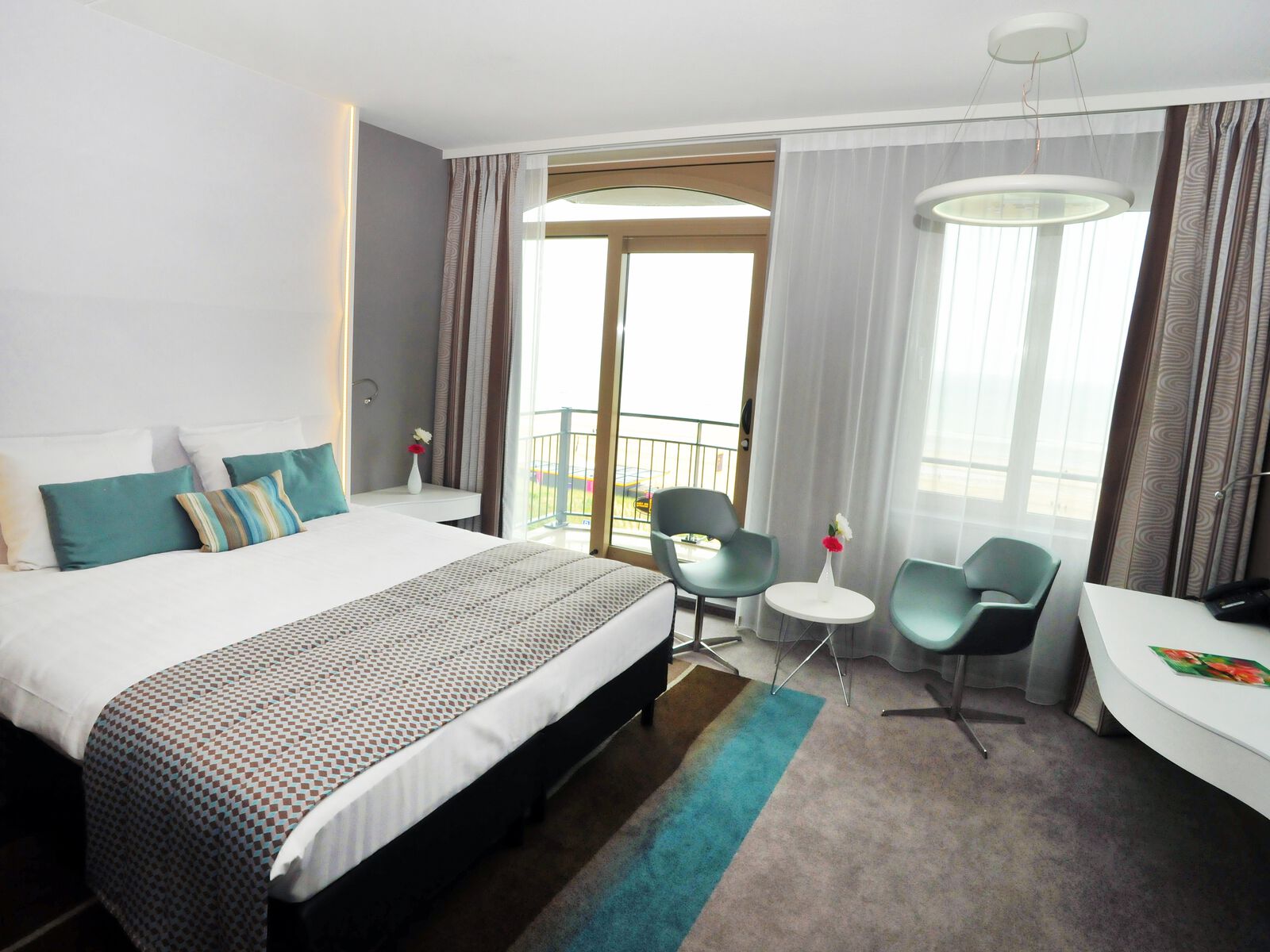 Strandhotel Golfzang beschikt over 144 kamers, waarvan een aantal kamers uitzicht heeft op zee. De modern ingerichte en ruime hotelkamers zijn voorzien van boxspringbedden, een bureau, flatscreen-tv, zitje en kluisje, een badkamer met wastafel, toilet, föhn en douchecabine met stortdouche. Alle kamers hebben een balkon en een aantal daarvan uitzicht op zee. Het hotel beschikt daarnaast over een sauna-accommodatie, gratis te gebruiken door hotelgasten. In deze accommodatie vindt u een Finse sauna, Turks stoombad en infraroodcabine.