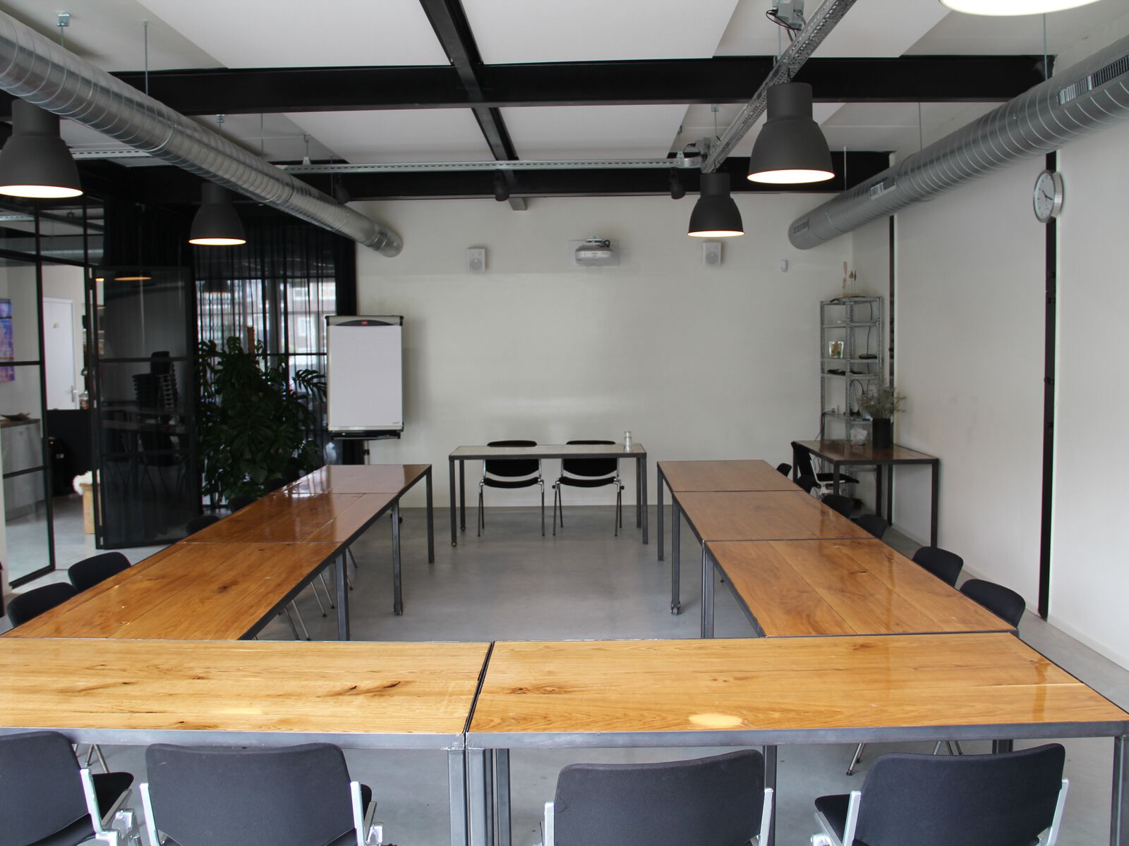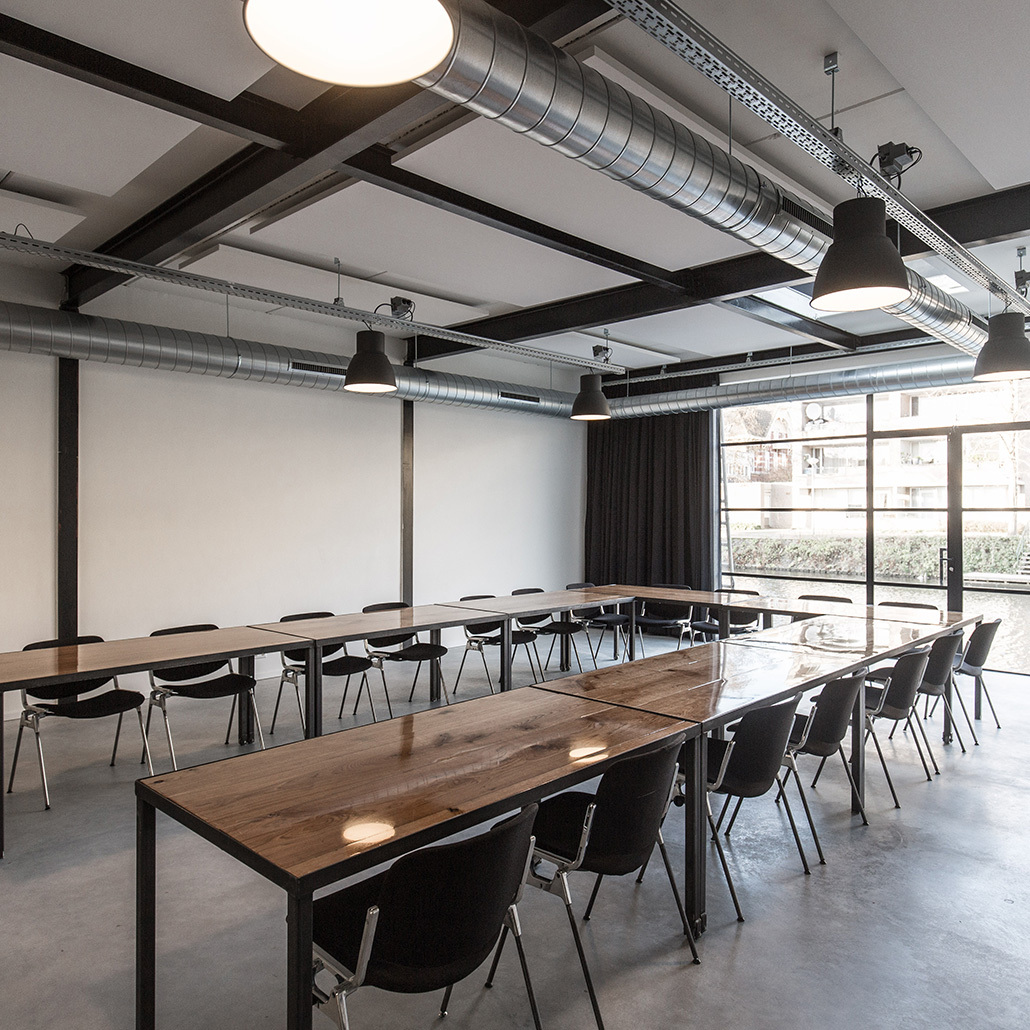 Deze stijlvolle studio bestaat uit twee vergaderruimtes: een grote ruimte voor maximaal 60 personen en een kleinere ruimte voor maximaal 8 personen. Samengevoegd hebben de ruimtes een maximale capaciteit van 80 personen. Daarnaast is er nog een gezamenlijke ruimte beschikbaar, die in overleg ook als breakout-ruimte gebruikt kan worden. Er zijn verschillende opstellingen mogelijk, met of zonder tafels en stoelen. Bij mooi weer kun je een frisse neus halen op de steiger of als onderbreking een leuke vaartocht maken.
