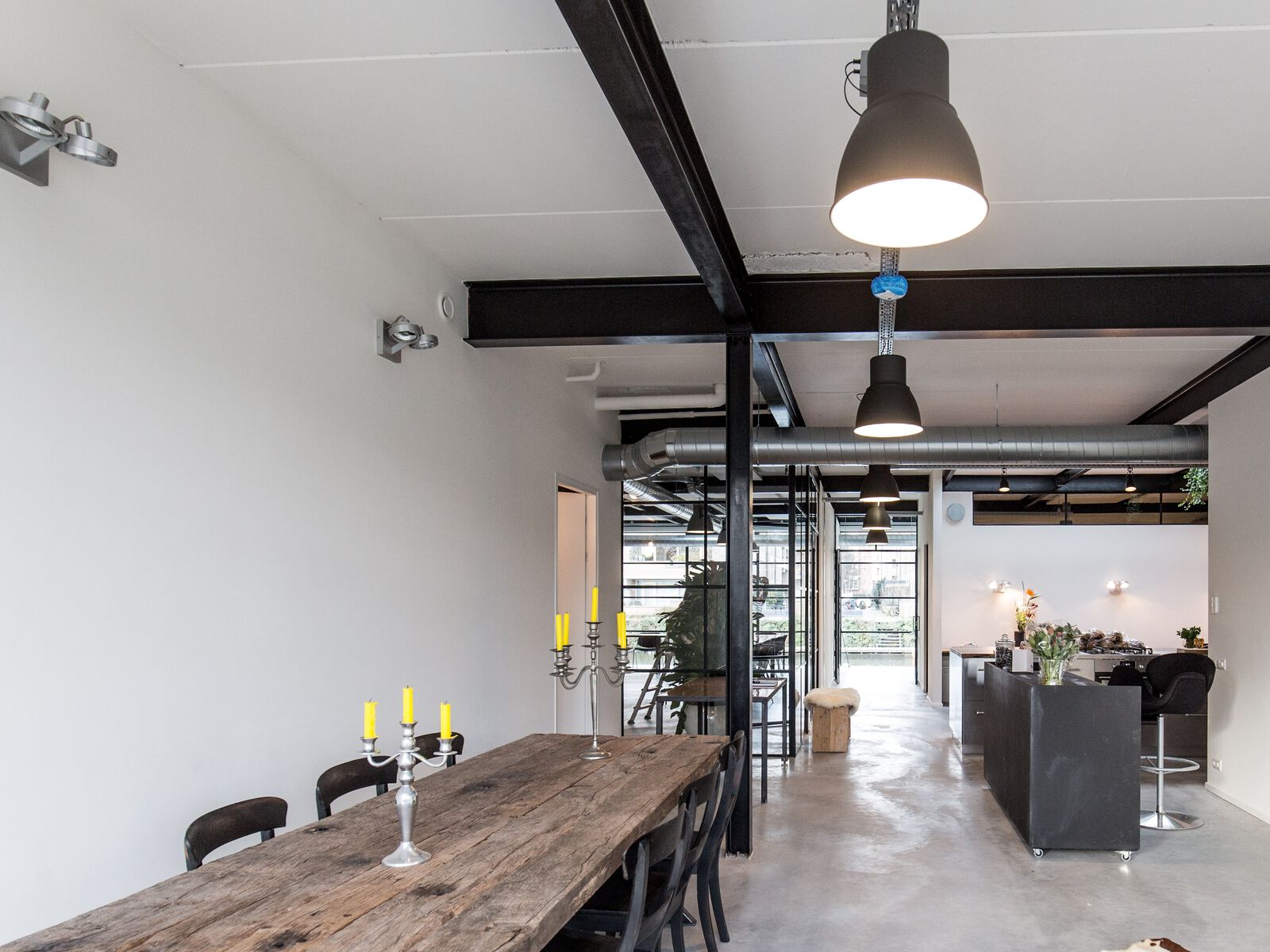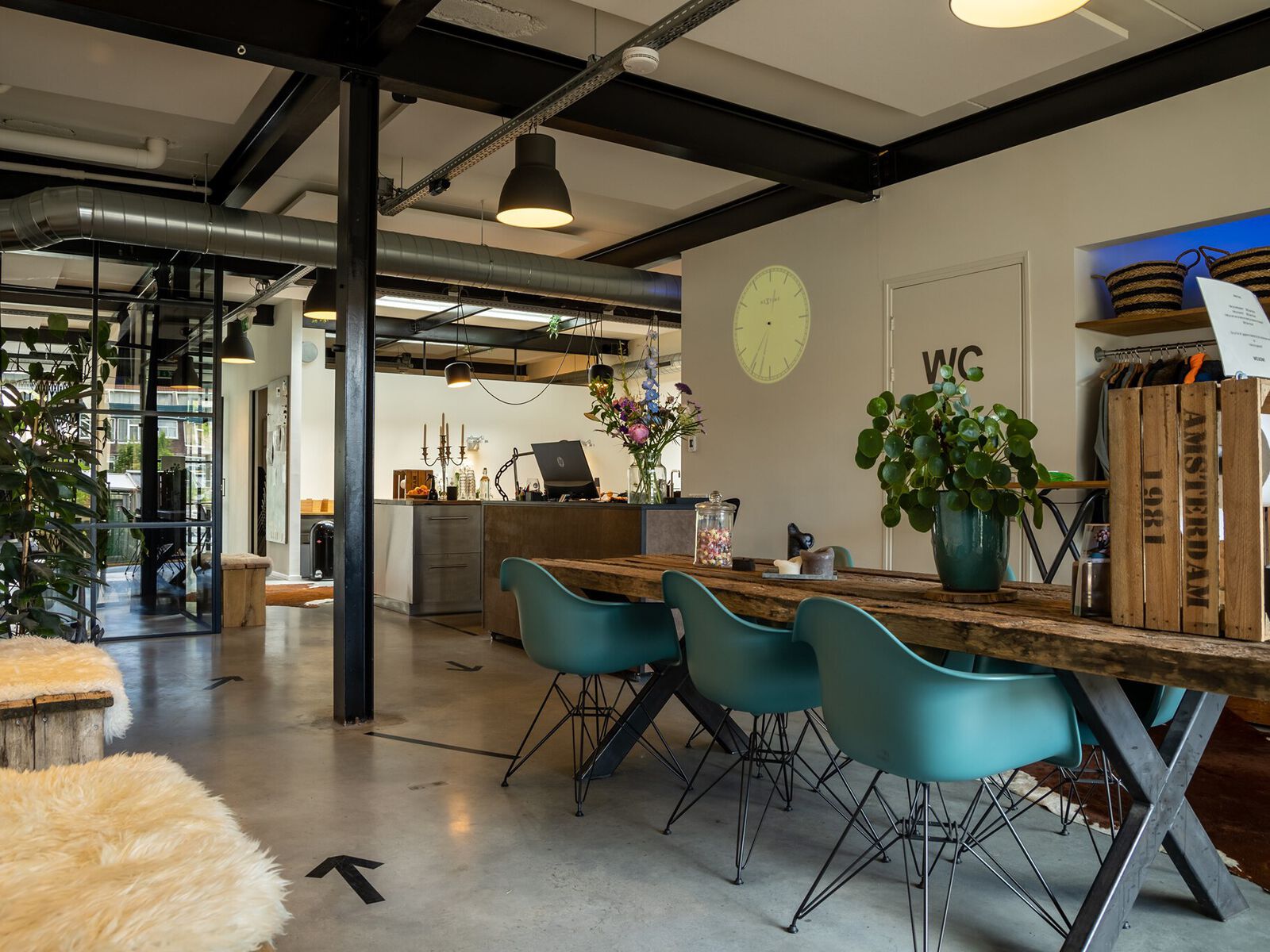 Deze voormalige loods met uitzicht op het Oostelijk Havengebied van Amsterdam wordt tegenwoordig gebruikt als inspirerende vergaderlocatie. Door het vele glas is deze studio een fijne werkruimte. Het interieur is rustig maar sfeervol en laat de authentieke details, zoals de betonnen vloeren en metalen steunpilaren, voor zichzelf spreken. De ruimtes grenzen aan een steiger met eigen sloep, ideaal voor een barbecue of buitenborrel in de zomer.