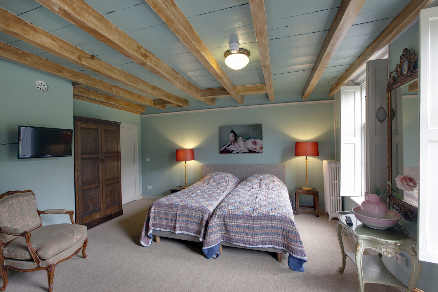 Elke kamer heeft unieke eigenschappen en is een bijzondere ruimte op zich. De inrichting heeft een Engelse, antieke stijl en straalt zowel luxe als warmte uit. De suites beschikken naast een slaapgedeelte ook over een sfeervol ingerichte living waar u in alle rust kunt genieten van uw kamer en verblijf.