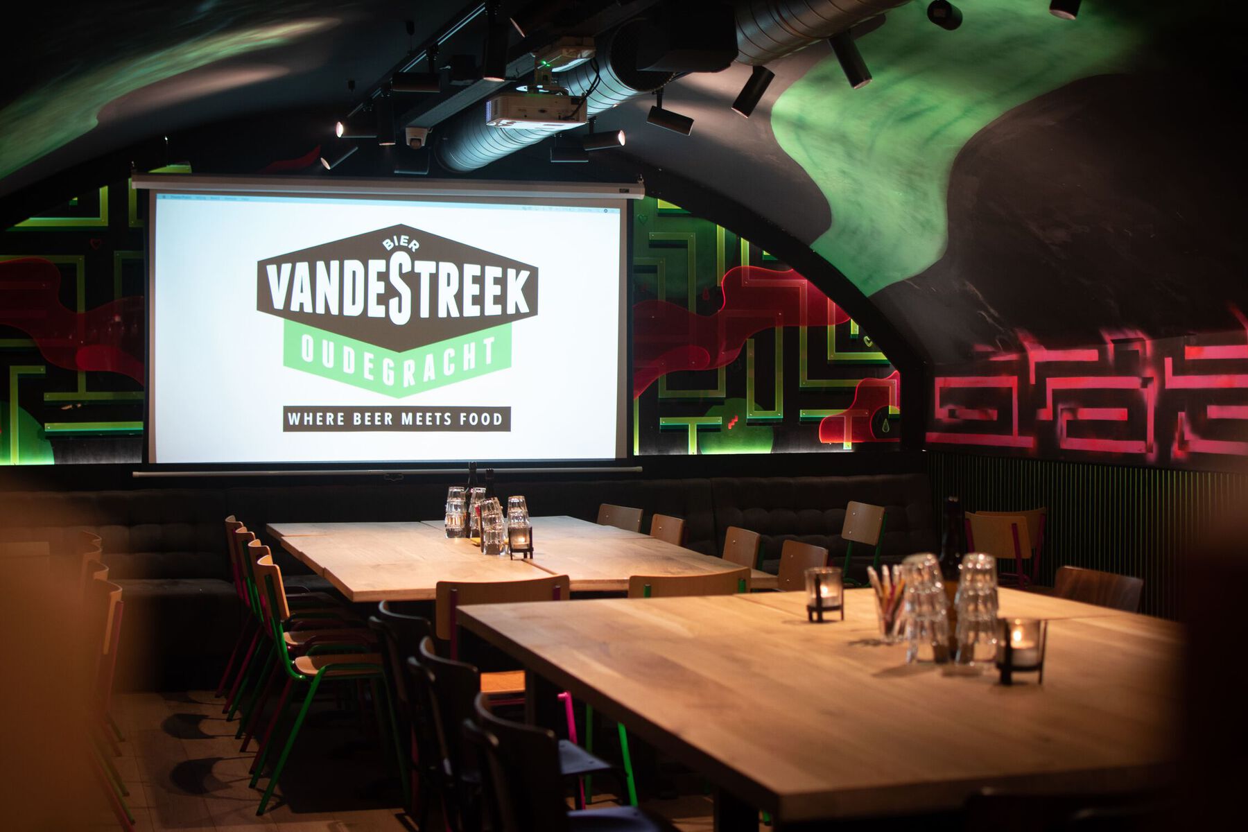 Welkom bij vandeStreek Oudegracht. De foodbar aan de Oudegracht in Utrecht bestaat uit twee verdiepingen met elk hun eigen beleving. Daarnaast vind je op beide verdiepingen een bar met elk 20 taps met naast alle vandeStreek-bieren, specials die alleen bij de eigen horecazaken te verkrijgen zijn. Boven kom je binnen in de moderne bruine kroeg. Neem de wenteltrap naar beneden en je komt terecht in de hazy werfkelder. Voor de zonnige dagen is er een heerlijk terras gelegen aan de historische Oudegracht.