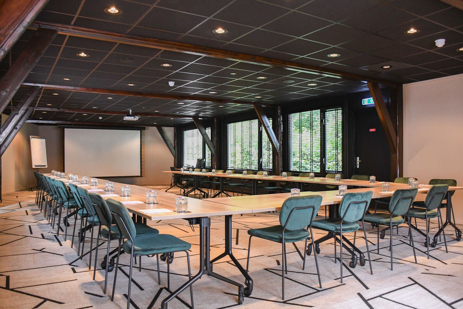 Vergaderen midden in de natuur biedt een goede boost voor de productiviteit. De 8 vergaderzalen bevinden zich op de begane grond, verdeeld over 5 gebouwen. Het is fijn dat u tijdens de pauze een frisse neus kunt halen en naar het restaurant kunt wandelen voor de lunch. Alle zalen zijn van alle gemakken voorzien en bieden plaats aan particuliere of zakelijke bijeenkomsten van 10 tot 150 personen. Alles bevindt zich op één locatie. Overnacht, vergader, dineer en organiseer teambuildingsactiviteiten onder één dak. In Veluwe Hotel De Beyaerd wordt u wakker aan de rand van de Veluwe. Meer zin in actie? Veluwe Events, het grootste outdoor terrein van Nederland, bevindt zich in de achtertuin. Ga voor een teambuildingsactiviteit met collega's zoals lasergamen of 4x4-rijden.