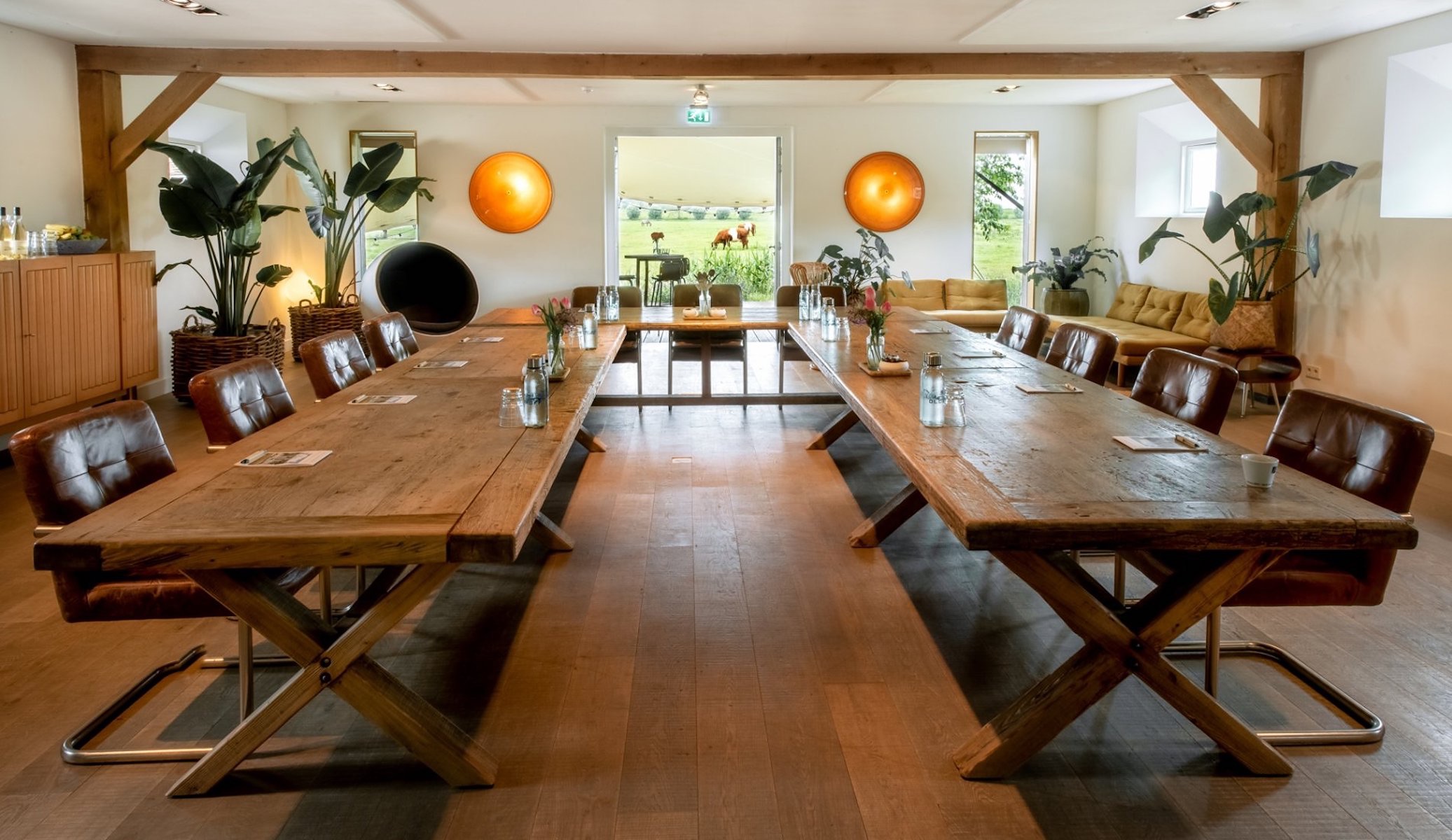 Villa Oldenhoff is landelijk gelegen in de groene polder aan de rivier Holendrecht, tussen Abcoude en Ouderkerk aan de Amstel, met rust, ruimte, luxe en comfort. Prachtig uitzicht, je kijkt direct op het weiland met de loslopende paarden. Vanuit de vergaderlocatie loop je zo het erf op. De villa combineert de uitstraling en traditie van vroeger met eigentijdse elementen. De grote, stoere keuken is de ontvangstruimte, waar je persoonlijk wordt verwelkomd met een heerlijk kopje koffie. Onder de keuken bij het hoofdgebouw bevindt zich de vergaderruimte (medium), geschikt voor 12 personen. Comfortabele stoelen en houten tafels vormen de basis voor de vergaderruimtes. De sfeervolle grote vergaderruimte (large/large+) heeft veel daglicht en is geschikt voor 35 personen. De villa is ook zeer geschikt voor het organiseren van een bedrijfsborrel of diner (tot 70-80 personen). Via de openslaande deuren kom je in de aangrenzende keuken waar lunch of diner genuttigd kan worden, vers bereid op locatie.