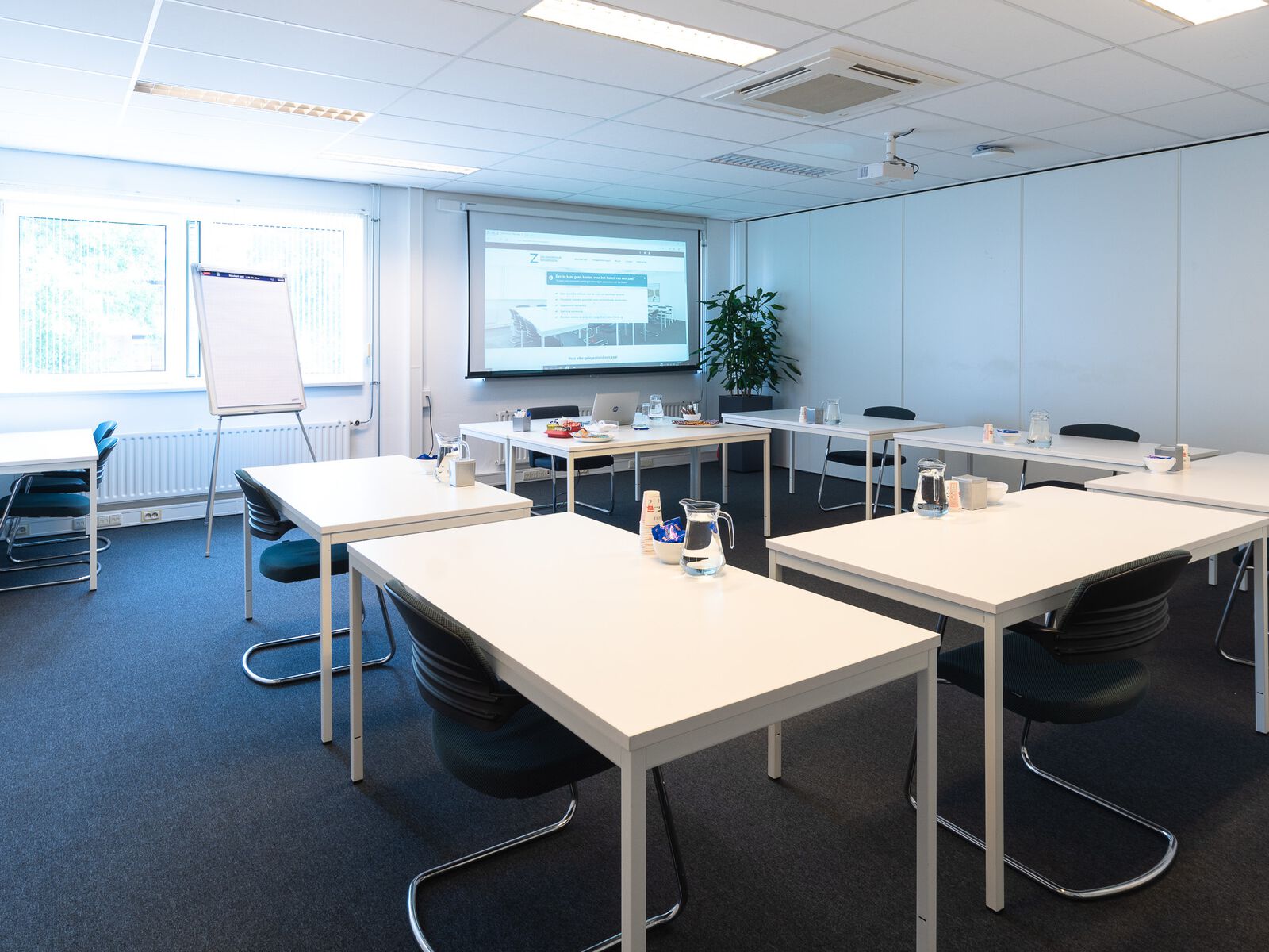 Of je nu een training geeft aan een kleine of grote groep, rustig wilt werken, wilt vergaderen of examens organiseert, bij Zalenverhuur Nieuwegein vind je altijd een passende zaal. Er wordt graag met je meegedacht over de opstelling van de zaal en de materialen die je nodig hebt om de dag naar tevredenheid te laten verlopen. Ook over catering hoef je niet na te denken, dit wordt in overleg met jou geregeld. Daarnaast is er een professionele studio-/webinarruimte beschikbaar waarmee je live online kunt trainen, vergaderen of een webinar kunt geven. De presentatie wordt opgenomen en kan via een beveiligde omgeving worden teruggekeken. Alles onder één dak, centraal gelegen in Nederland.