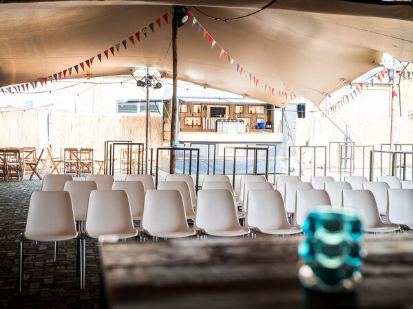 Het buitenterrein leent zich uitstekend voor allerlei soorten evenementen, zoals bijvoorbeeld een bedrijvenfestival of een buitenceremonie.