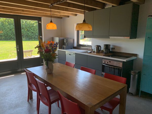 Deze subruimte/eetkeuken is een multifunctionele eetkeuken die altijd is inbegrepen bij de vergaderruimte. De keuken is volledig ingericht en van alle gemakken voorzien. Dankzij de zitruimte is het een fijne plek voor een gezamenlijke maaltijd of om de groep op te splitsen. De ruimte grenst direct aan het terras en de royale privé-tuin, die exclusief voor het gezelschap toegankelijk zijn.