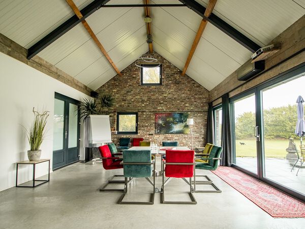 De vergaderruimte is licht en veelzijdig, met een luxe en huiselijke sfeer en een puntdak van 5 meter hoog. Via de grote schuifpui geniet u van veel daglicht en kijkt u uit op de royale privé-tuin met terras, die exclusief voor uw groep beschikbaar is. De zaal is uitgerust met een beamer, een geluidsinstallatie (HDMI), een whiteboard en een flip-over. Bij huur van de vergaderruimte maakt u tevens kosteloos gebruik van de subruimte/eetkeuken.