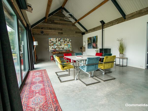 Dommeldaal is een authentieke en inspirerende vergaderlocatie die rust en ruimte ademt. Het gebouw beschikt over twee multifunctionele ruimtes op de begane grond, de vergaderruimte en de eetkeuken/subruimte die u altijd samen boekt. Zo heeft u het gehele pand, het terras en de royale privé-tuin exclusief tot uw beschikking, zonder aanwezigheid van andere groepen. De inrichting combineert moderne, industriële en kleurrijke accenten met een warme, huiselijke stijl. Dit geeft de locatie een luxe ma…