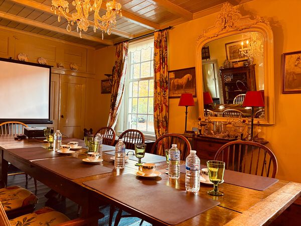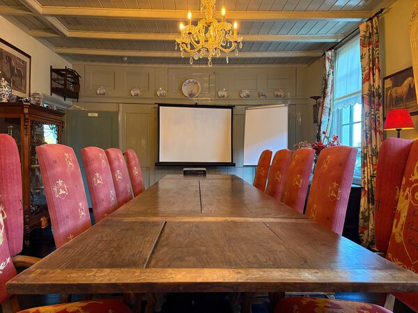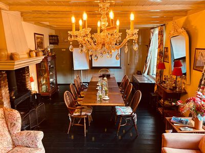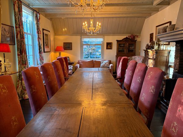 Te midden van de historische kern van Amerongen, direct tegenover de poort van Kasteel Amerongen, ligt Het Gasthuys. Een monumentaal pand uit 1850, met zorg gerestaureerd en volledig ingericht voor exclusieve bijeenkomsten, meerdaagse sessies en inspirerende overnachtingen. Stap binnen in een ambiance van rust, ruimte en klassieke gastvrijheid. Het volledige huis staat tijdens uw verblijf tot uw beschikking: een royale huiskamer/vergaderruimte met open haard, meerdere stijlvolle slaapkamers, een volledig uitgeruste keuken en een besloten tuin om even naar buiten te stappen. De vergaderruimte/huiskamer heeft een grote vergadertafel met plaats voor 12 personen. Voor informeel overleggen is er een zithoek en open haard.