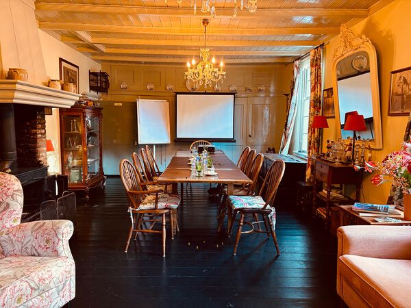 De vergaderkamer is de huiskamer in het Gasthuys. Een gezellige ruimte met een grote vergadertafel waaraan maximaal 12 personen kunnen plaatsnemen. Achter in de kamer bevindt zich een loungegedeelte waar informeel overleg kan plaatsvinden. Er bevindt zich een open haard in de ruimte die, mits mogelijk, in de avond gebruikt kan worden. Als er overnachtingen geboekt zijn, staat het gehele huis ter beschikking, inclusief de huiskamer, en kan daar 's avonds gezellig gebruik van worden gemaakt.