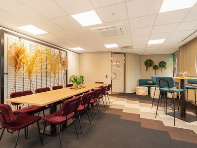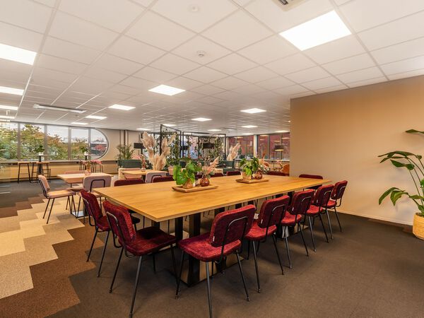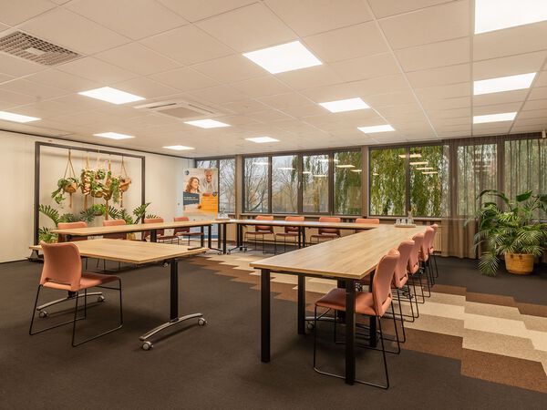 Deze stijlvolle ruimte is ideaal voor vergaderingen, trainingen of informele bijeenkomsten. Voorzien van een grote vergadertafel voor 12 personen, 4 statafels en een gezellige zithoek met bank en poefs (28 zitplekken), is er volop flexibiliteit voor elke setting.