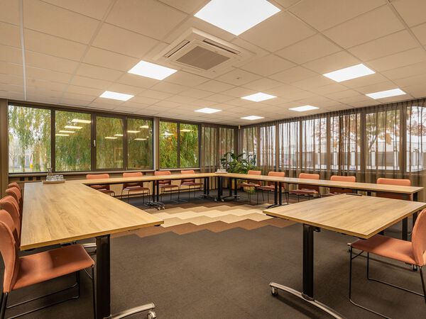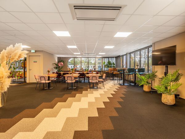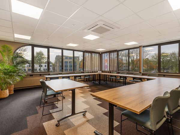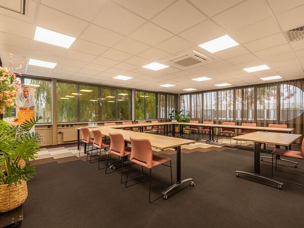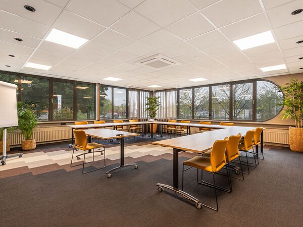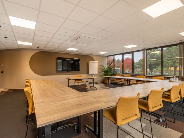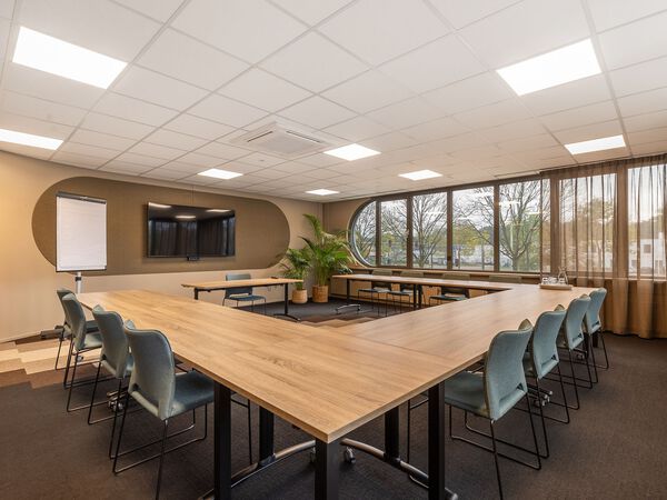 Deze veelzijdige ruimte, voorzien van een extra groot tv-scherm, is perfect voor vergaderingen, trainingen of creatieve sessies. Een luxe koffie- en thee-arrangement met bron-, bruis- en smaakwater, handfruit, huisgemaakt bananenbrood en allerlei zoete en hartige lekkernijen is, zoals bij alle zalen, bij de prijs inbegrepen. De opstelling biedt volop flexibiliteit, van formeel overleg tot informele uitwisseling in een ontspannen setting.