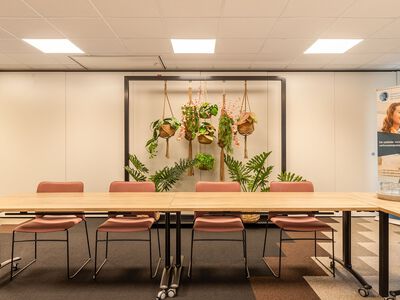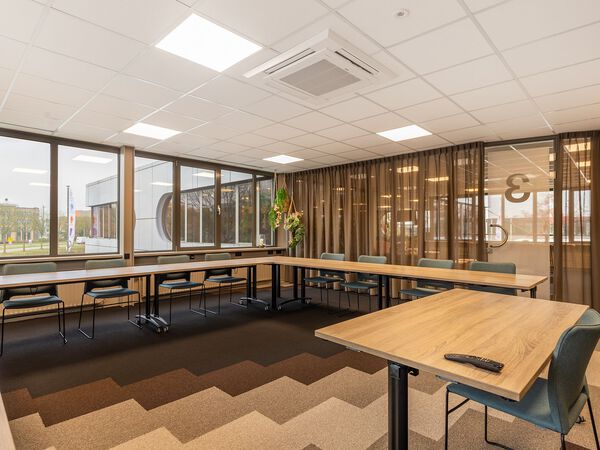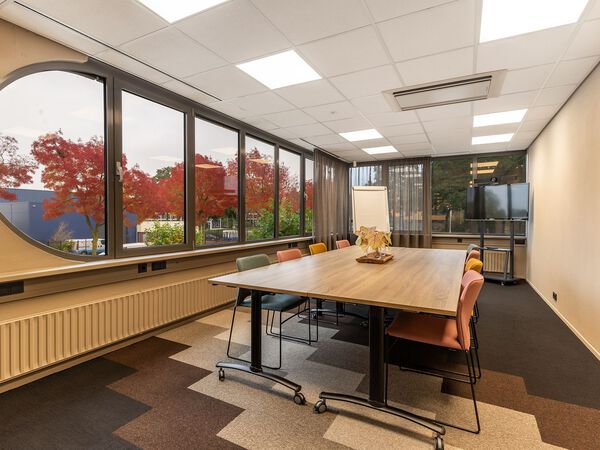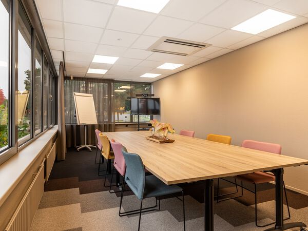 Deze lichte ruimte is ideaal voor vergaderingen en trainingen. Voorzien van een grote vergadertafel voor 8 personen en eventueel benodigde AV-apparatuur.
