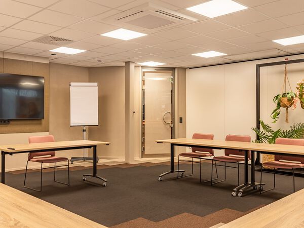 De kleine vergaderruimte is perfect voor kleine gezelschappen, teamsessies, coachinggesprekken of interviews. De ruimte is comfortabel ingericht met een tafel voor 4 personen of een tafel voor 2 personen en een tweezitsbank. De ruimte is voorzien van daglicht en moderne faciliteiten zoals snelle wifi.