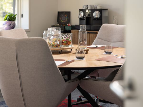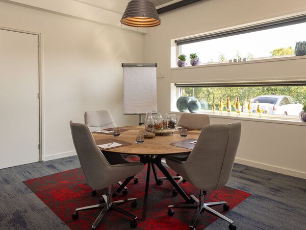 De Vergaderruimte Klein is een sfeervolle spreekkamer die geschikt is voor ongeveer 10 personen en tevens kan dienen als sfeervolle entree voor de grote zaal.