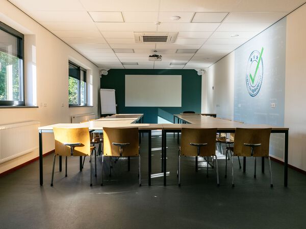 Er zijn 16 zitplaatsen in het leslokaal, dat zich bevindt op de eerste etage. De tafels kunnen in meerdere vormen worden geplaatst. Er is een beamer aanwezig met geluid via de boxen. Uiteraard ontbreekt airco ook niet.