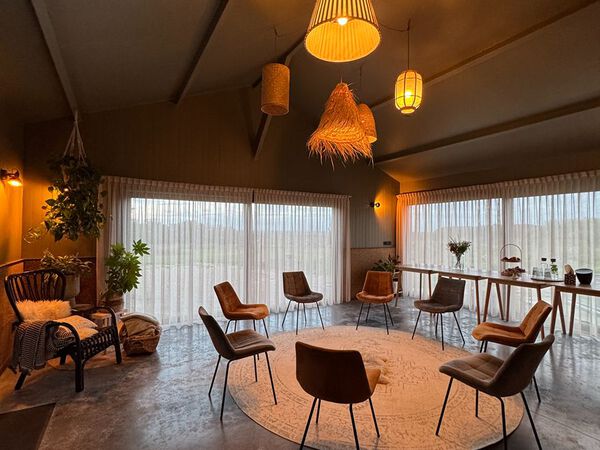 Lodge Windraak is een voormalige ijssalon, gelegen op het terrein van een grote woonboerderij, en omgetoverd tot een veelzijdige vergaderlocatie. De ruimte is stijlvol en prettig ingericht, met aandacht voor comfort en inspiratie. Elk hoekje nodigt uit tot creativiteit, van gezellige zitplekken tot de sfeervolle vuurplaats, die gebruikt kan worden voor verbindende sessies en cirkels. De lodge ademt een warme, landelijke sfeer en biedt een rustige omgeving om geconcentreerd en ontspannen te werke…