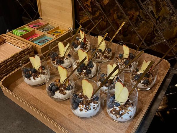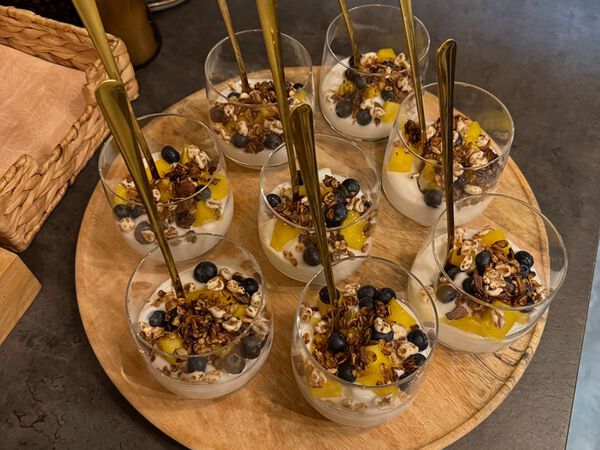 Wij schenken veel aandacht aan het eten en drinken tijdens jouw bijeenkomst. Onze lunches zijn zoveel mogelijk lokaal, biologisch en voedzaam, omdat wij geloven dat een goede maaltijd bijdraagt aan het slagen van je sessie. We bieden verschillende arrangementen aan. In ons aanbod zit; heerlijke koffie, een zoete versnapering, verschillende soorten (verse) thee, (prik) water met een smaakje, vers fruit, tussendoortjes, kombucha, lunch en/of een borrelplank. Andere wensen zijn altijd bespreekbaar.