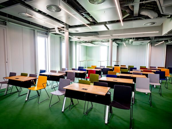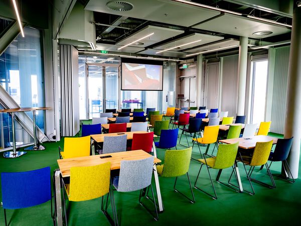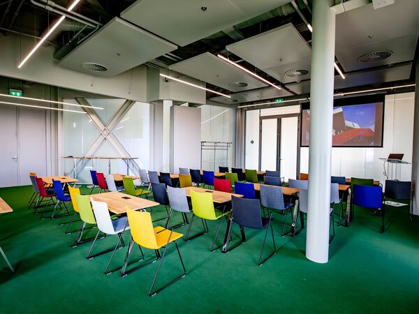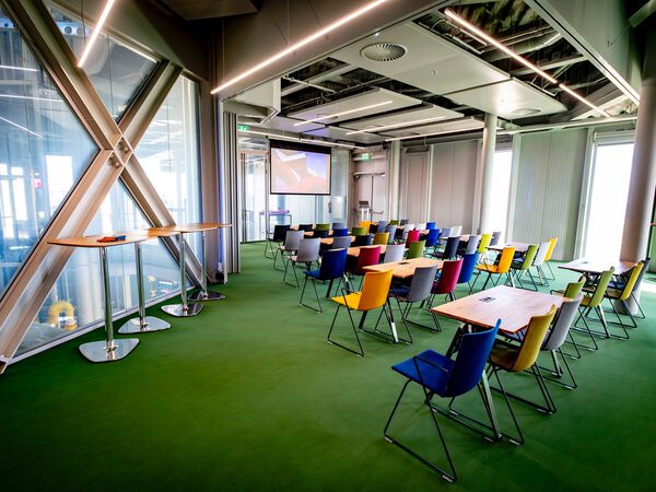 Op de derde verdieping vindt u de Green Room, een inspirerende zaal die zeer geschikt is voor creatieve sessies, workshops of presentaties. De zaal biedt ruimte aan 100 personen in theateropstelling. Ook is de Green Room op te splitsen in twee afzonderlijke ruimtes: een voor 50 personen en een voor 20 personen. Ideaal als uw bijeenkomst vraagt om meerdere ruimtes dicht bij elkaar, of als u met een kleine groep bent. De huur is exclusief catering en aanvullende activiteiten.
