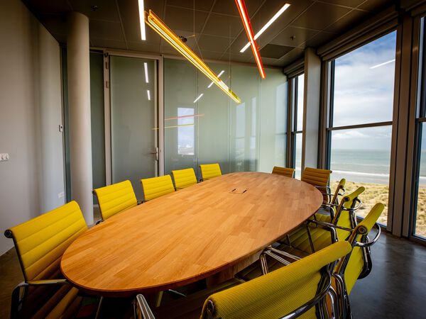 Gelegen op de vierde verdieping biedt de Yellow Room een prachtig zicht op het strand en de haven. De vaste boardroomtafel maakt deze ruimte zeer geschikt voor overleggen voor groepen tot 10 personen. De ruimte is uitgerust met een flexibel scherm en vergaderapparatuur voor online vergaderingen. De huurprijs is exclusief catering en aanvullende activiteiten.