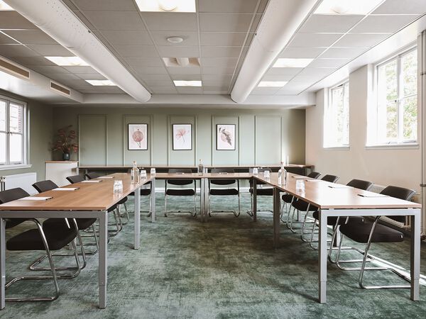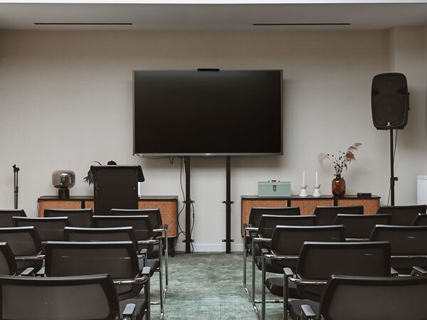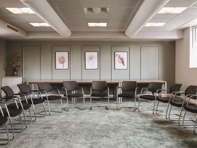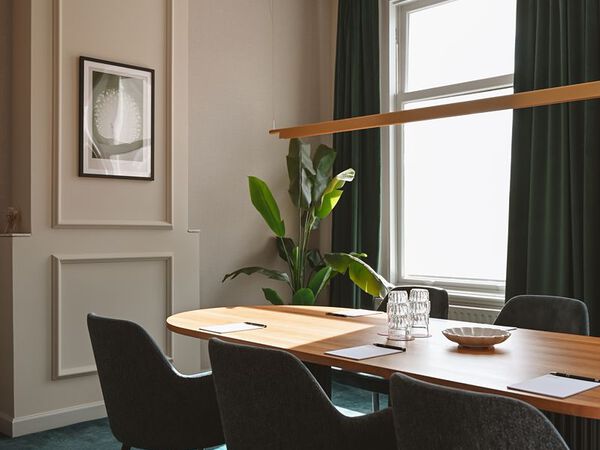 Voor intiemere bijeenkomsten tot ongeveer 6 personen is deze kamer zeer geschikt. Door het warme interieur voel je je snel thuis. De kamer beschikt over een vaste centrale tafel met comfortabele stoelen. Er is een groot scherm aanwezig.