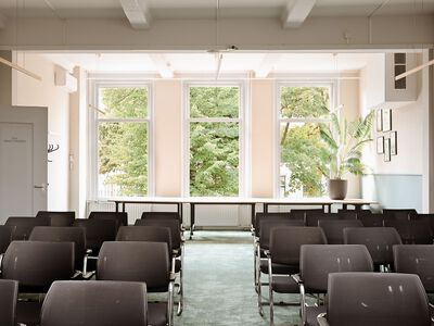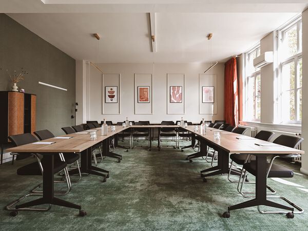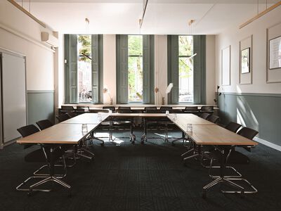 Ruime zaal gelegen op de begane grond aan de grachtzijde. Voorzien van airconditioning, whiteboard, groot beeldscherm, flipover en audio.