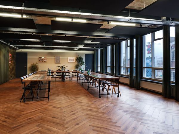 Deze sfeervolle, volledig af te sluiten ruimte biedt niet alleen optimale privacy, maar ook een prachtig uitzicht over de NDSM, met al haar rauwe en inspirerende facetten. Het is de perfecte locatie voor een meeting, presentatie, privé diner, borrel of als workshopruimte.
