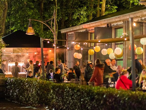 De Plataan bevindt zich in een van de hangars op loopafstand (50 m) van brasserie 't Boshuys. De lunch of het diner wordt in de brasserie geserveerd.
