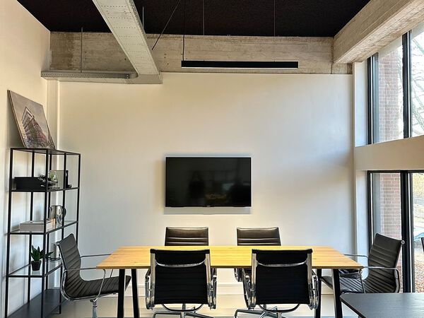 De sfeer in onze vergaderruimte is rustig, licht en modern: precies wat je nodig hebt om productief te kunnen werken. De grote ramen zorgen voor veel natuurlijk daglicht, terwijl de strakke afwerking en zachte tinten een kalme, professionele uitstraling geven. De inrichting is bewust minimalistisch gehouden: geen ruis, geen drukte, alleen wat je nodig hebt om goed te kunnen werken of overleggen. De vergadertafel en stoelen zijn comfortabel en stijlvol, en de ruimte kan eenvoudig worden aangepast…